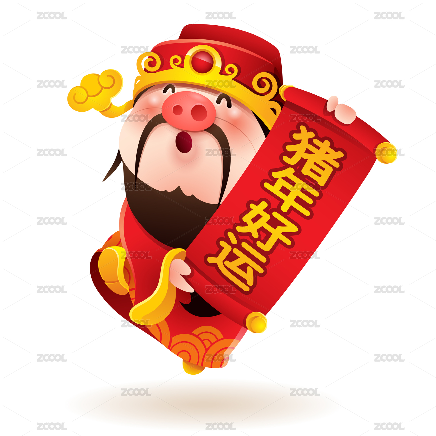 中国财神爷和小猪