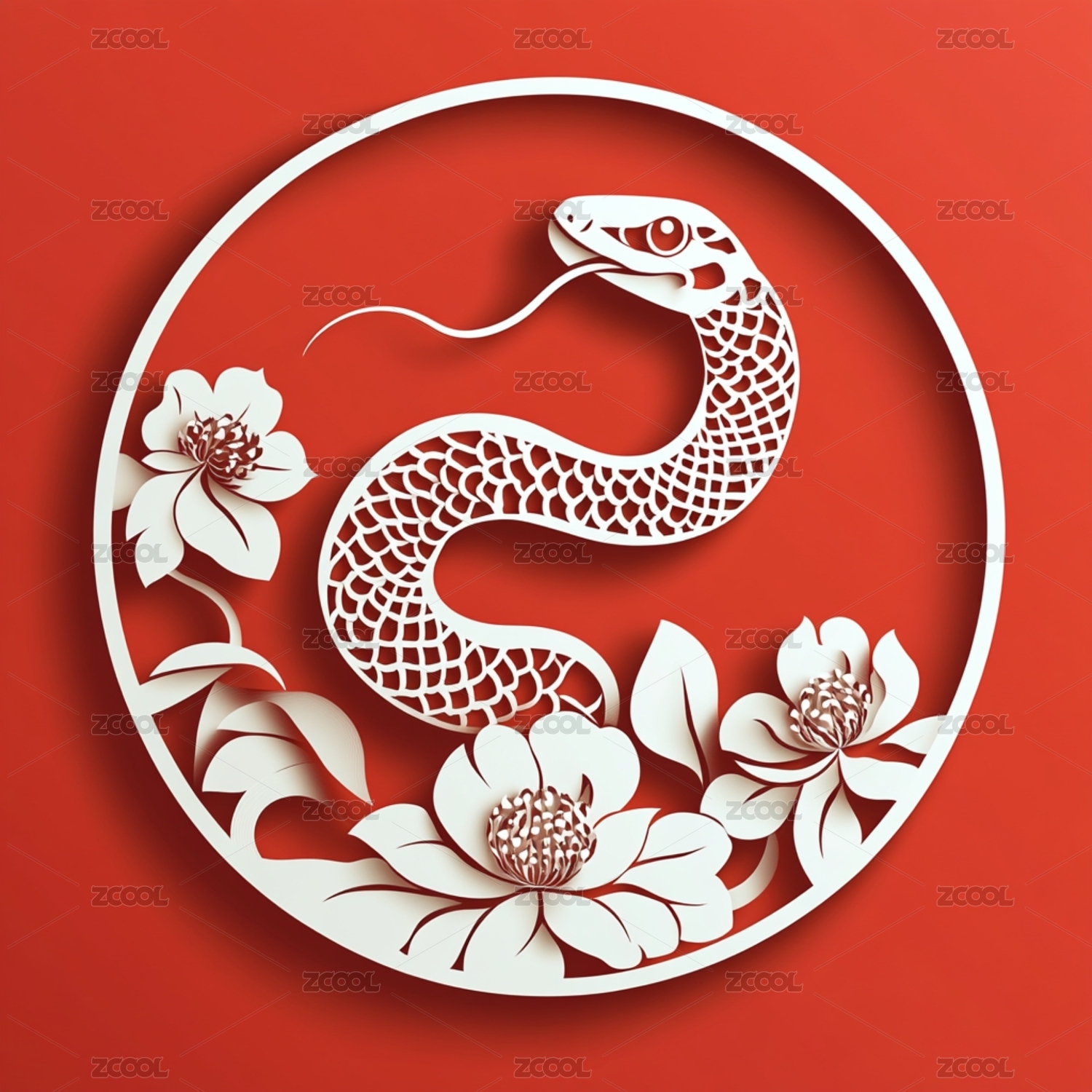 剪纸风格中国十二生肖蛇