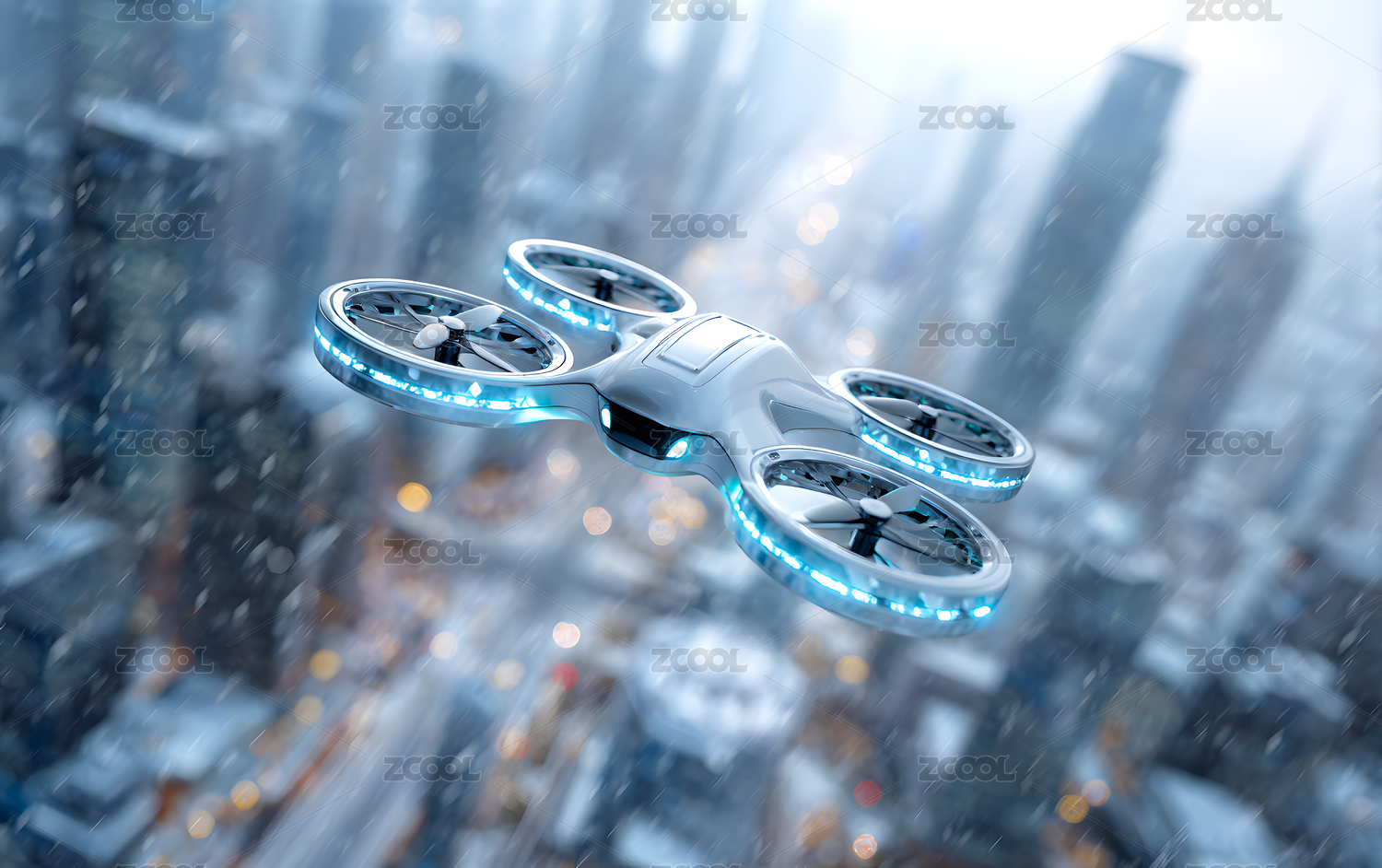 无人机,飞机,天空,白色,蓝色,亮光,智慧,城市,航拍