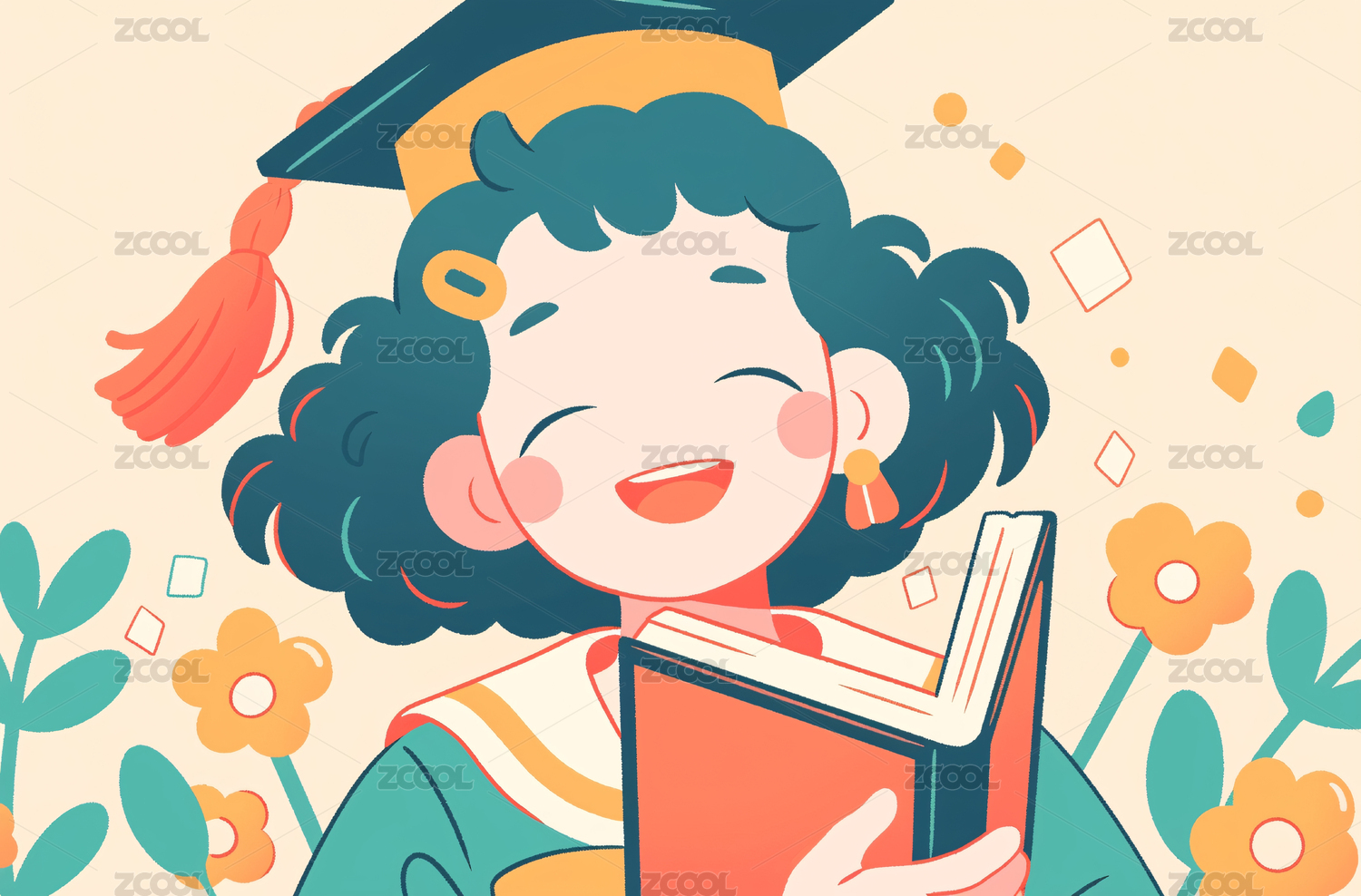 毕业,人物,插画,学位,学生,开心,背景,壁纸,蓝色,服饰