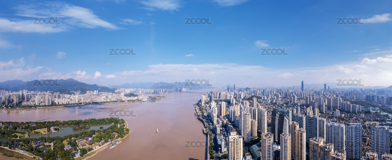 中国福建省福州市海峡金融街CBD与江南CBD的城市风光