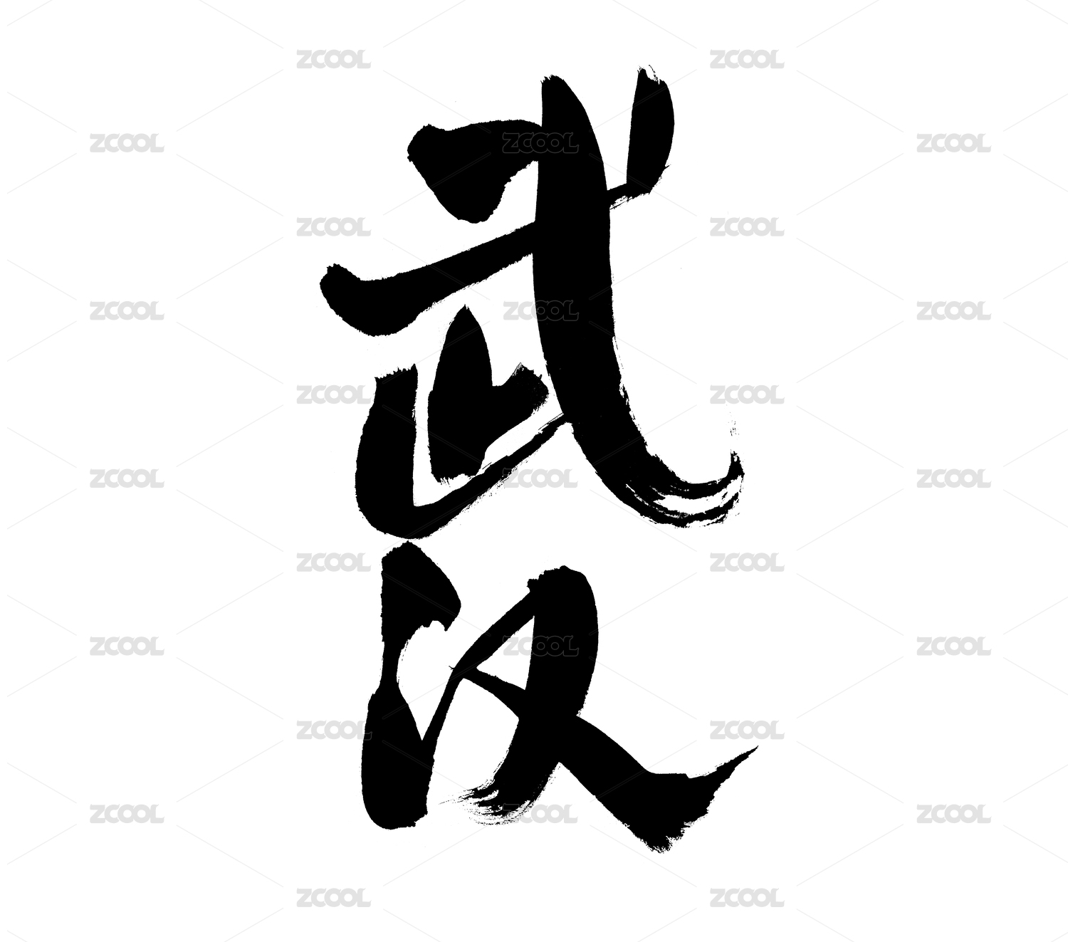 中国著名旅游城市湖北武汉地名创意手写书法字体