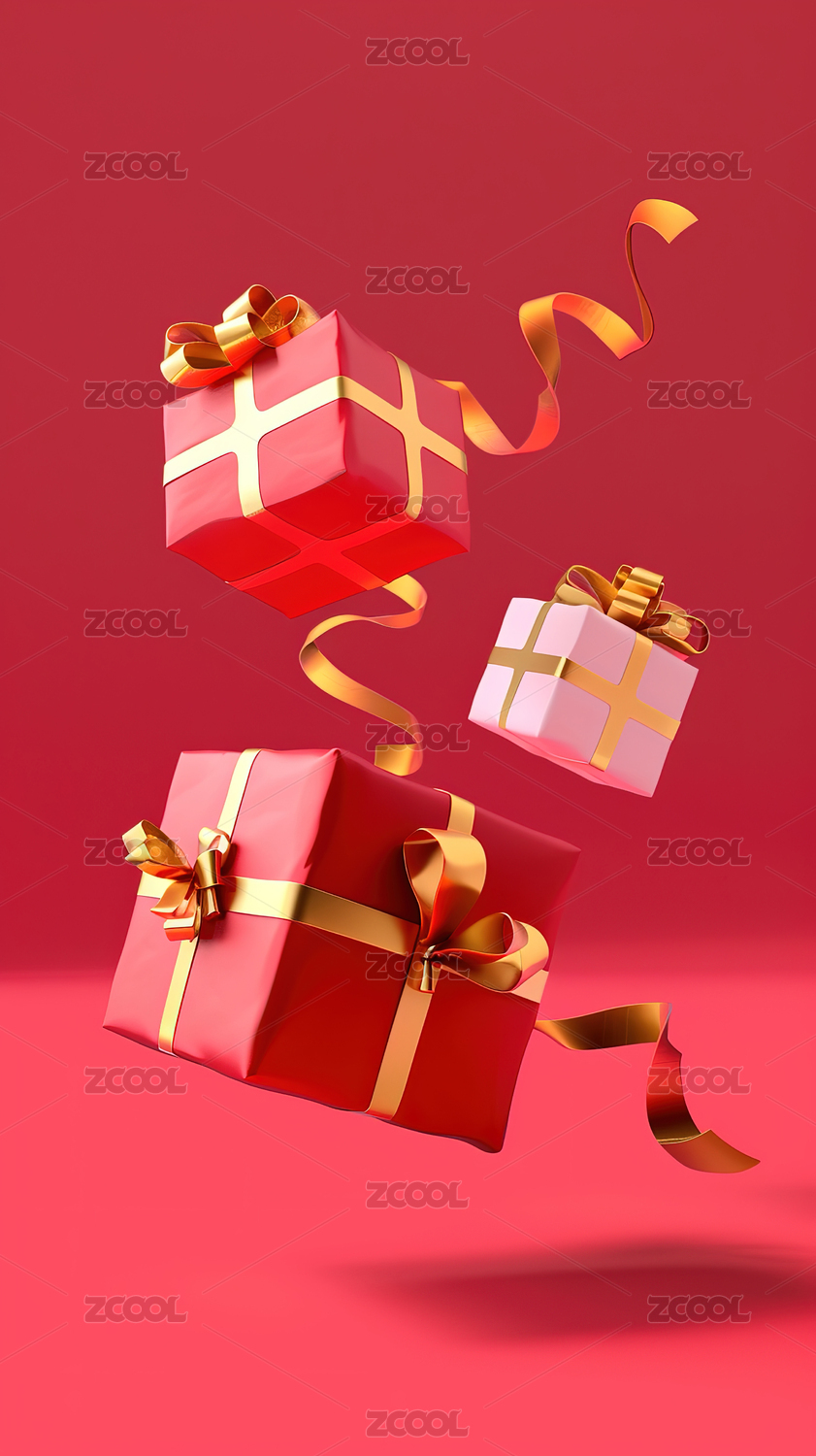 红色礼盒3D渲染场景