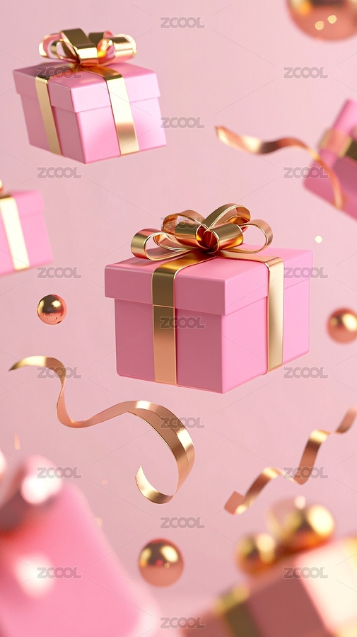漂浮的粉色礼盒