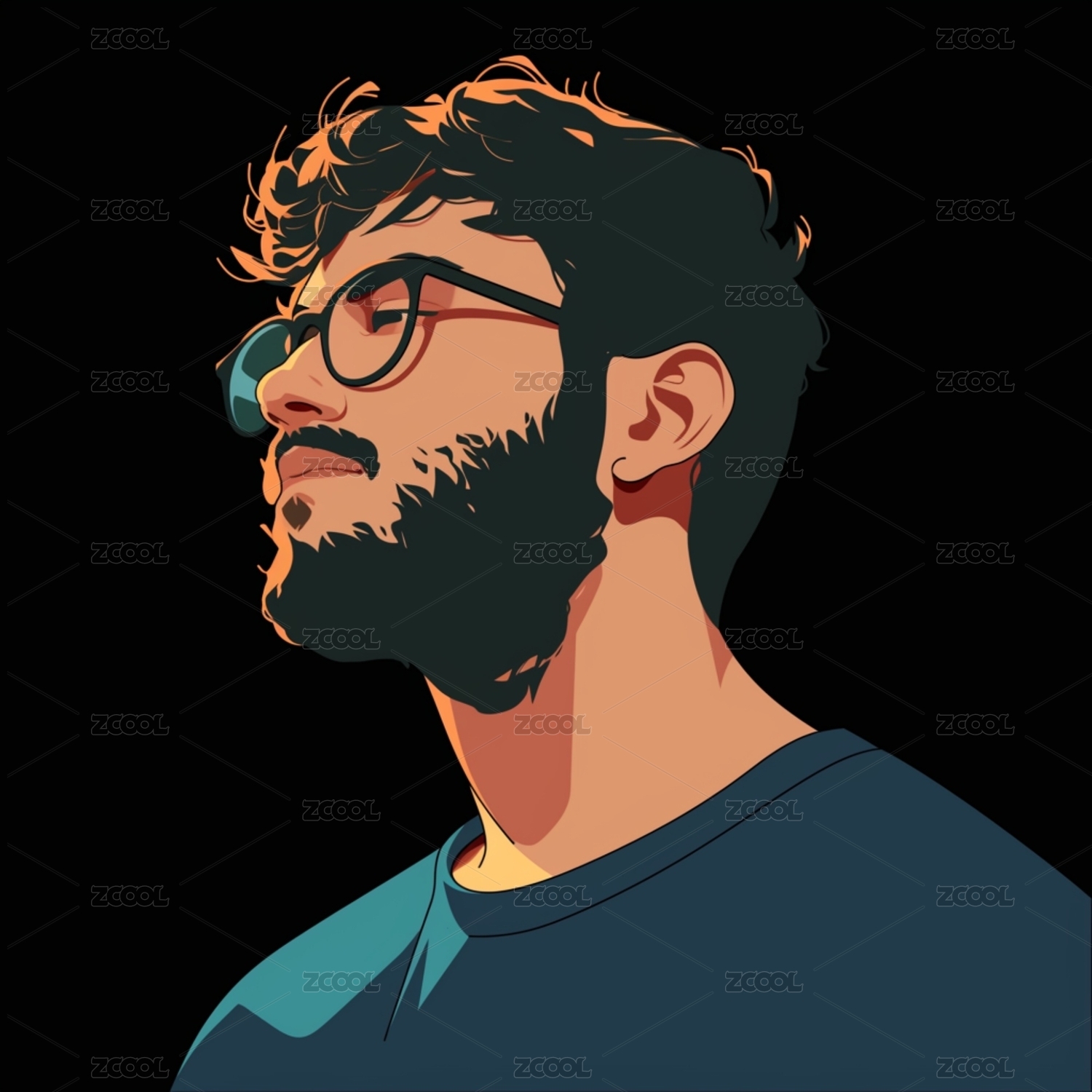 黑色男士时尚肖像大头照矢量扁平化设计背景