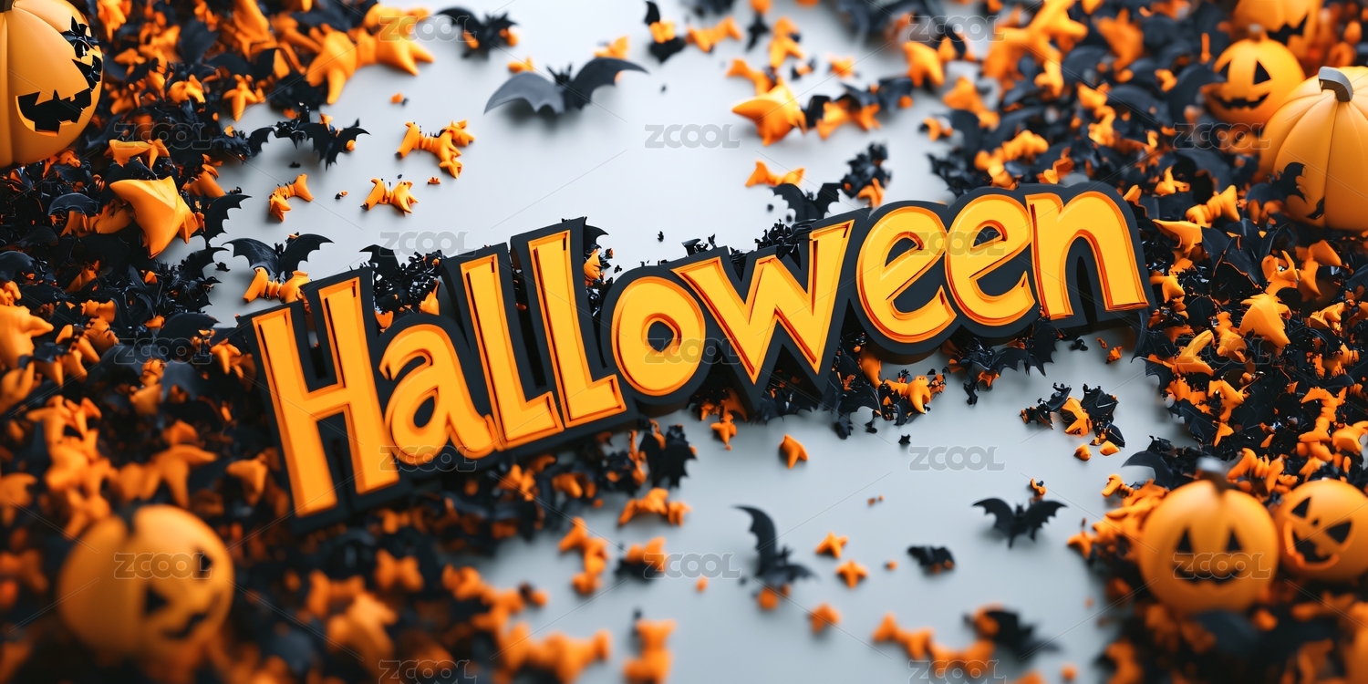 万圣节,Halloween,字体,艺术字,卡通,漫画,南瓜灯,蝙蝠,蜘蛛网,橙色