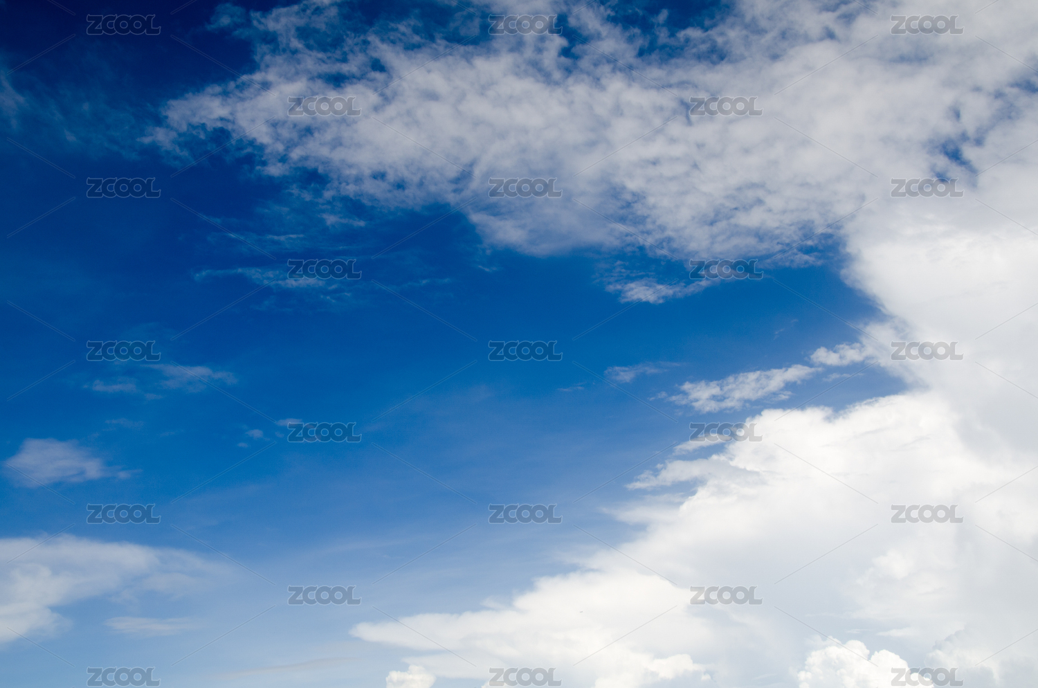 宁静的天空,蓬松的云朵映衬着明亮的蓝色背