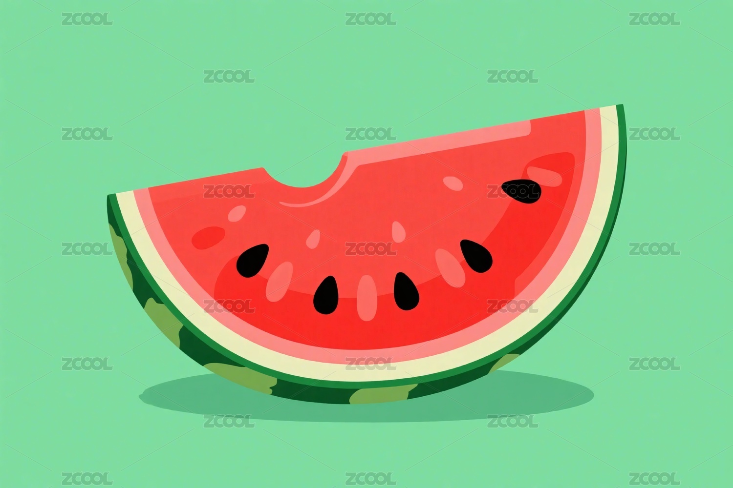 夏季,夏天,清凉,插画,西瓜花,西瓜叶,红色,绿色,白色,红配绿