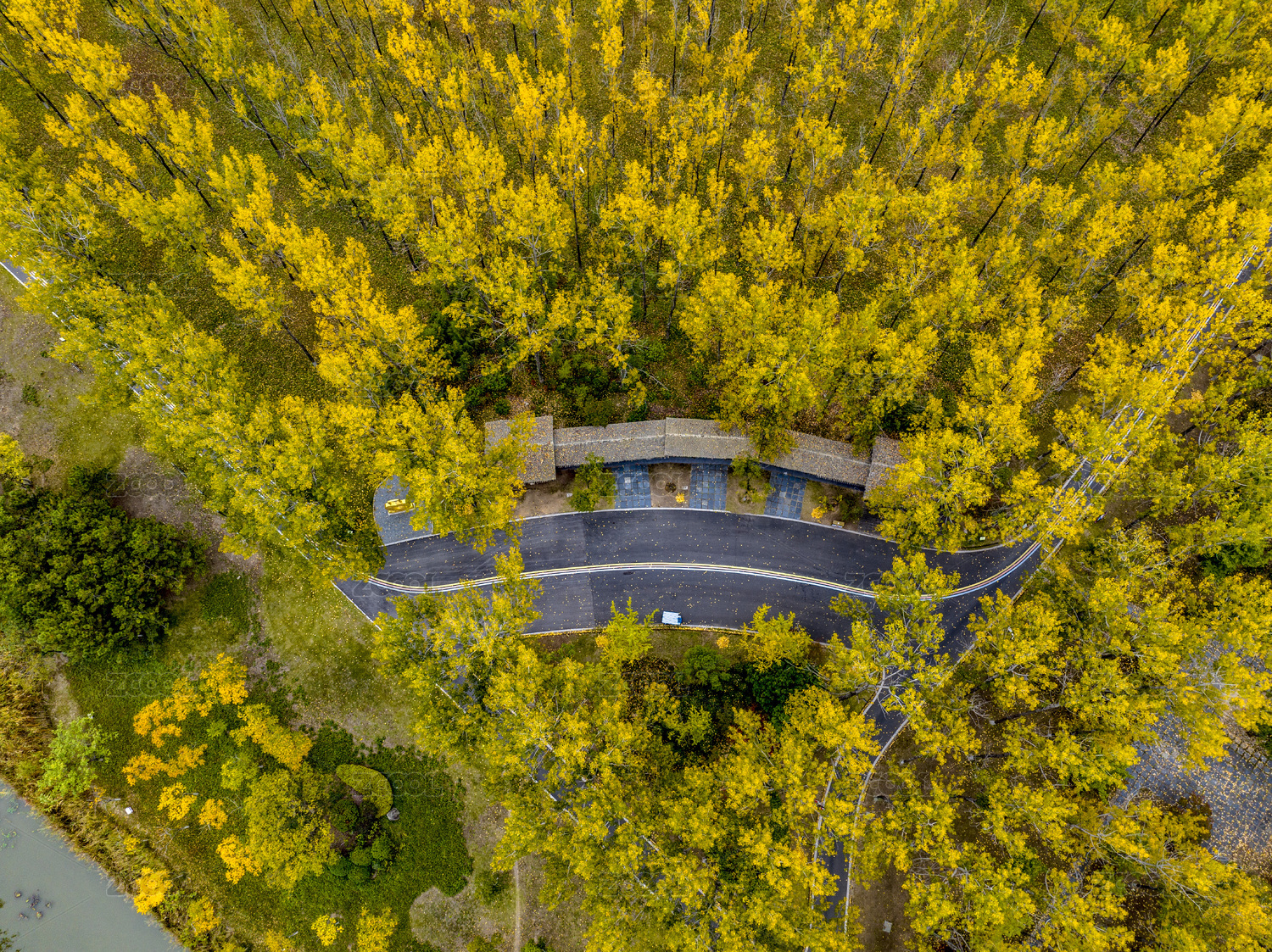 航拍中国安徽省宣城市郎溪县静湖公园的早晨