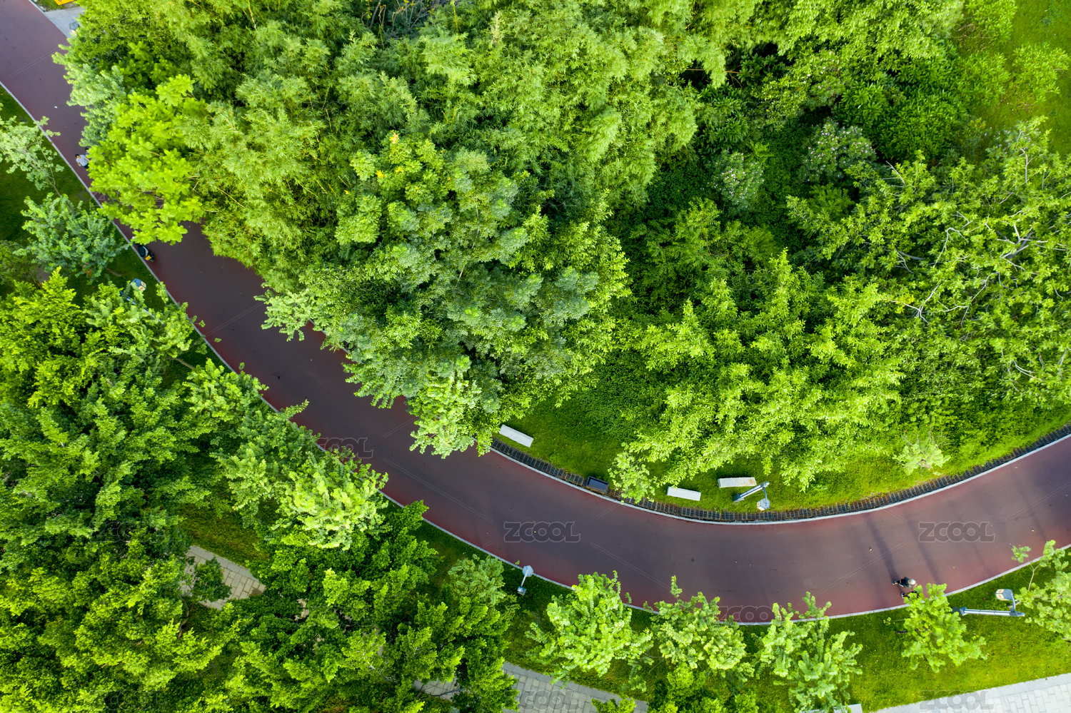 航拍广东东莞华阳湖湿地公园里的健身绿道