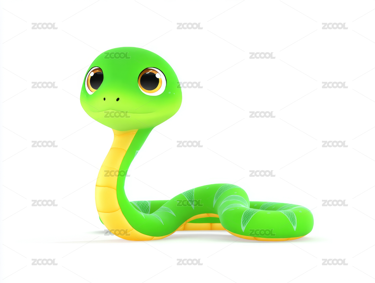 3D,卡通,可爱的,蛇,形象,插画,蛇年,一条,AIGC,元素