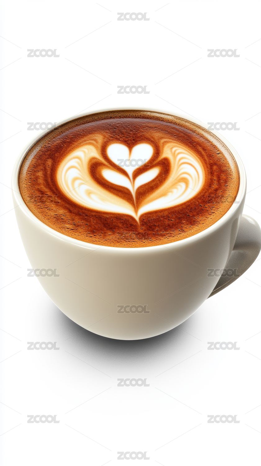 拿铁咖啡,拿铁拉花咖啡,咖啡杯,拉花,白底,投影