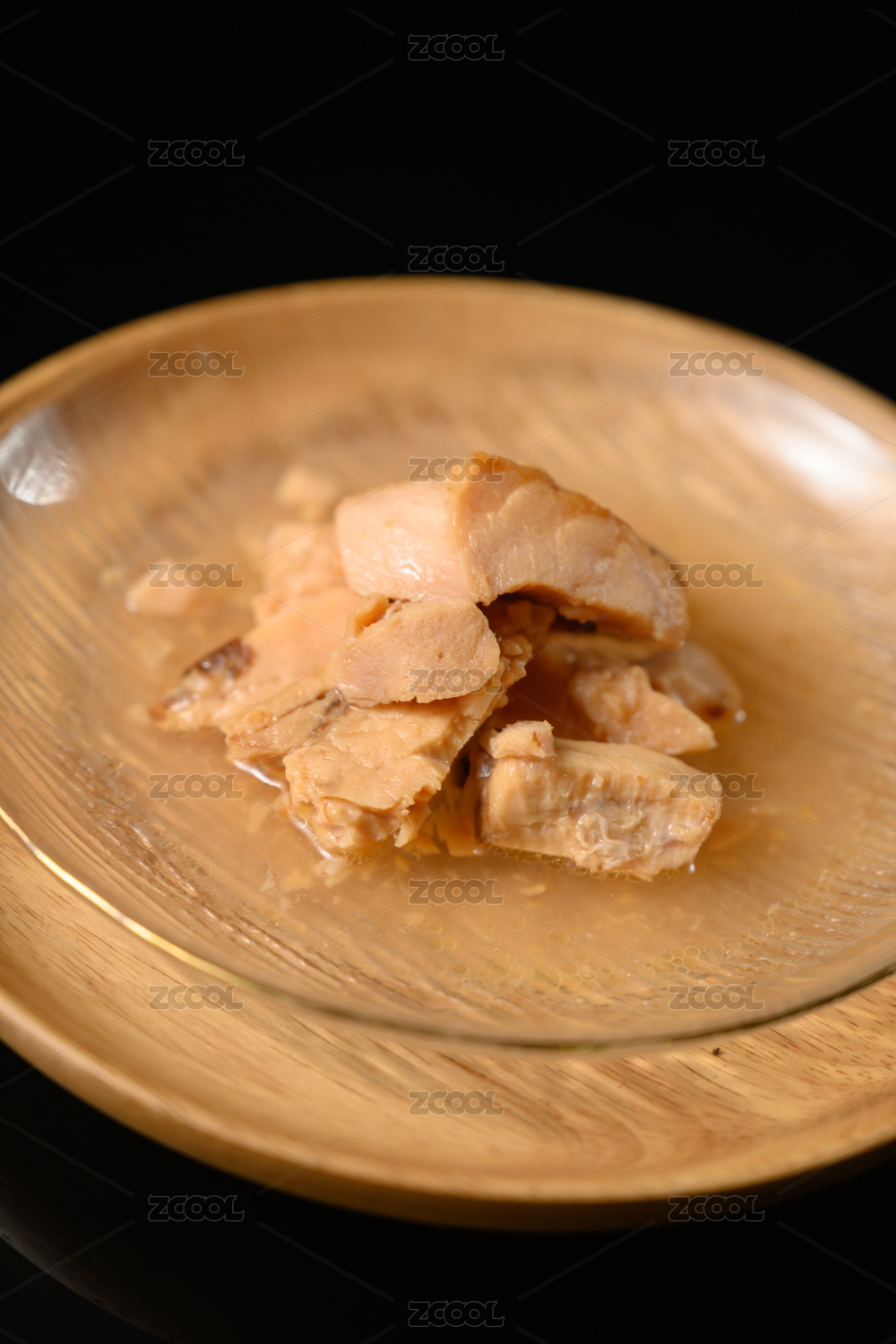 桌面上的盘子里的美味可口的油浸金枪鱼