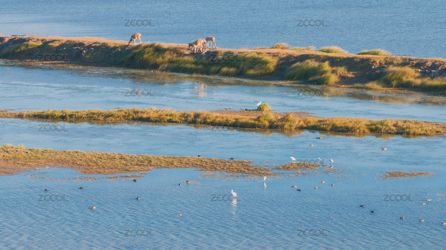 航拍江苏盐城大丰黄海之滨野鹿荡湿地麋鹿欢