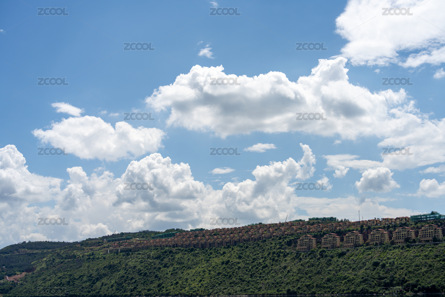 晴空万里,蓝天,白云,山脉,高山,山峰,云朵,天空,晴朗,晴空