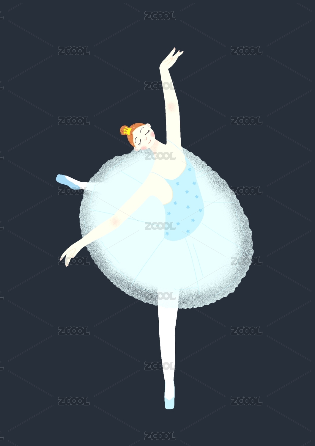 手绘跳芭蕾舞的舞者美丽青春活力女孩插画