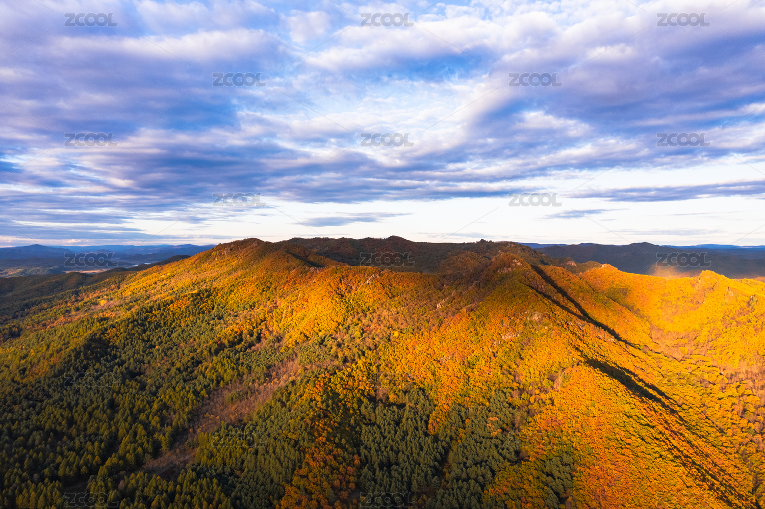小兴安岭东北乡村秋天五花山自然风景航拍