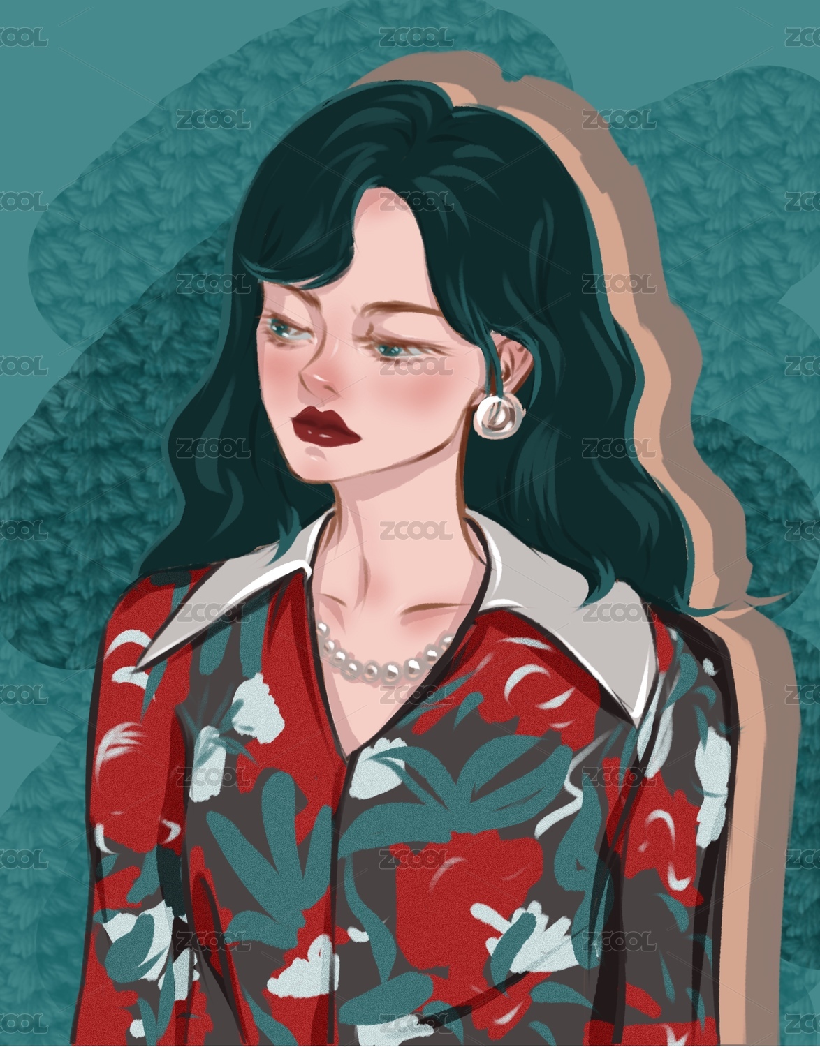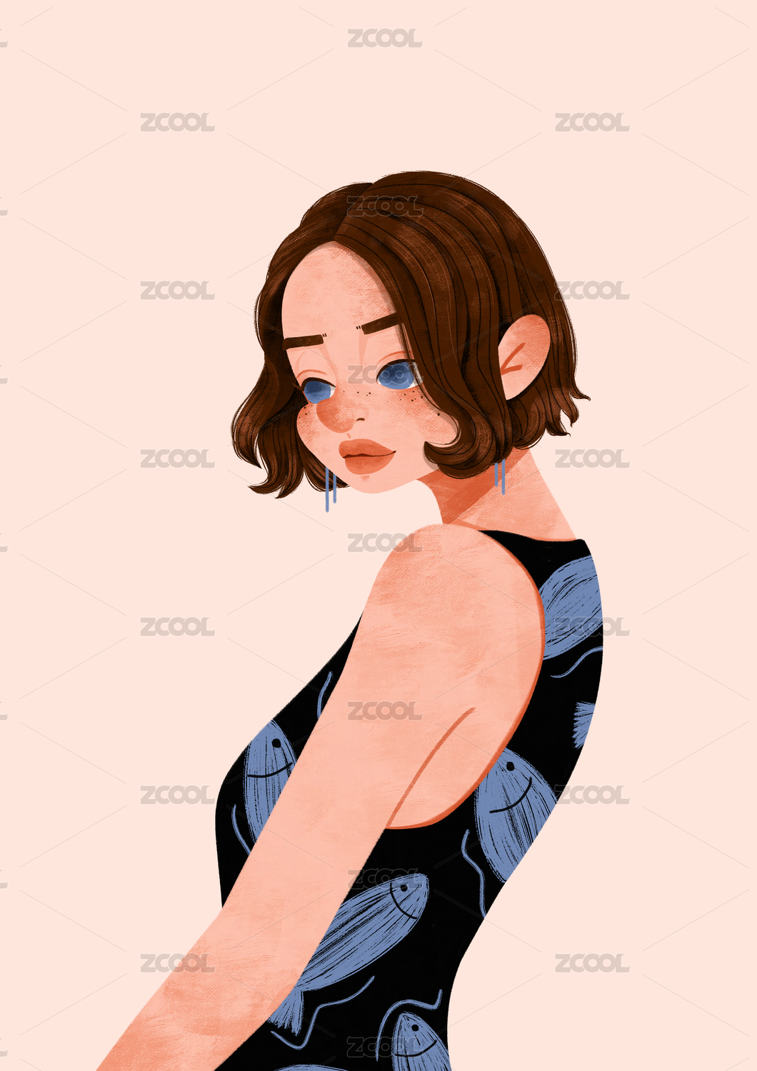 插画,欧美,美女,肌理,HEKMDTK202211,午后,气质,咖啡,休闲,人物