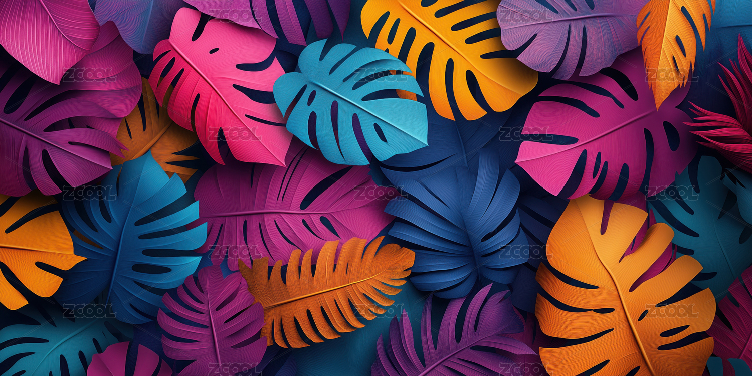 彩色热带植物叶子背景