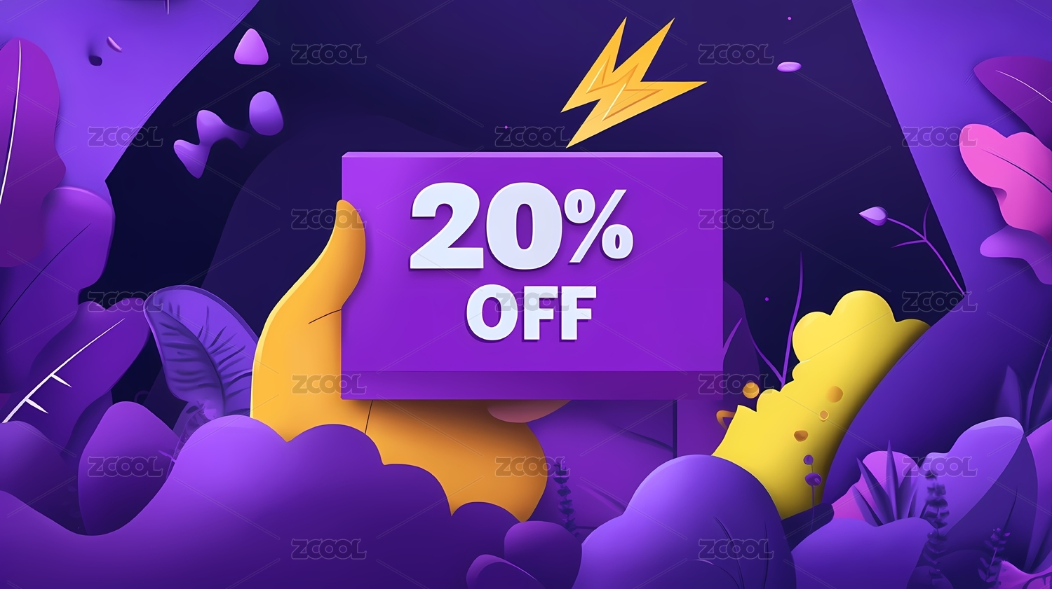 促销广告,一只手拿着一张显示折扣的卡片