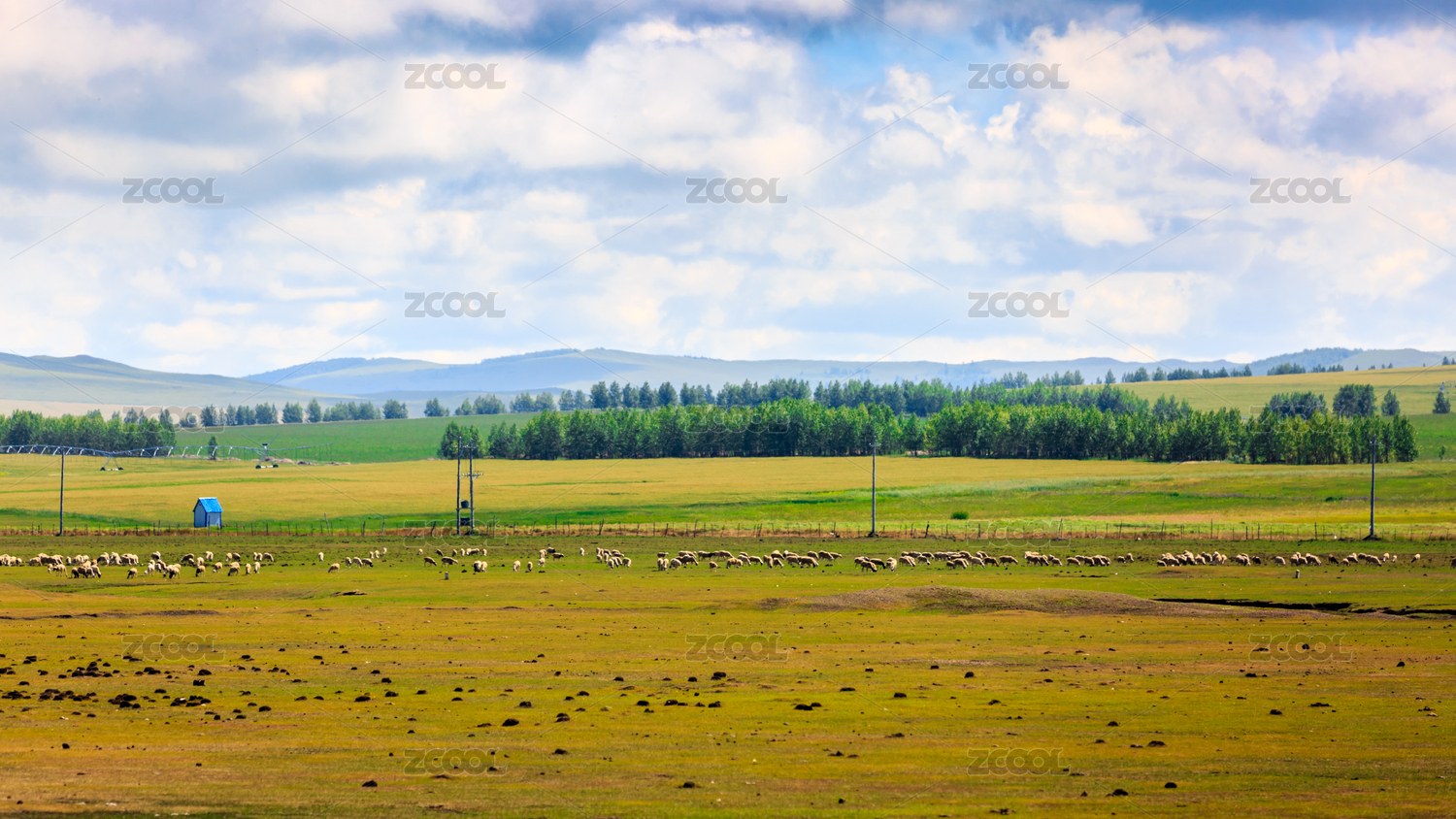 大草原天然牧场上放牧的羊群
