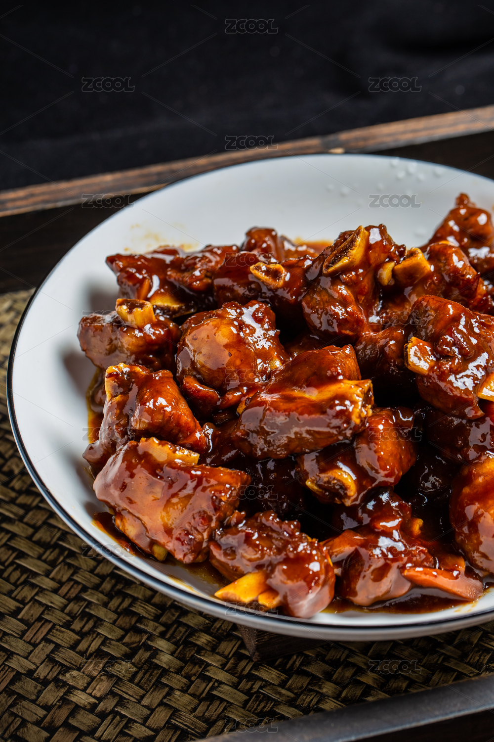 黑色背景一盘糖醋排骨