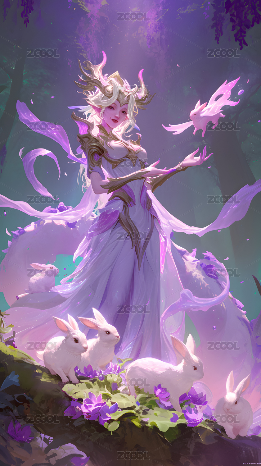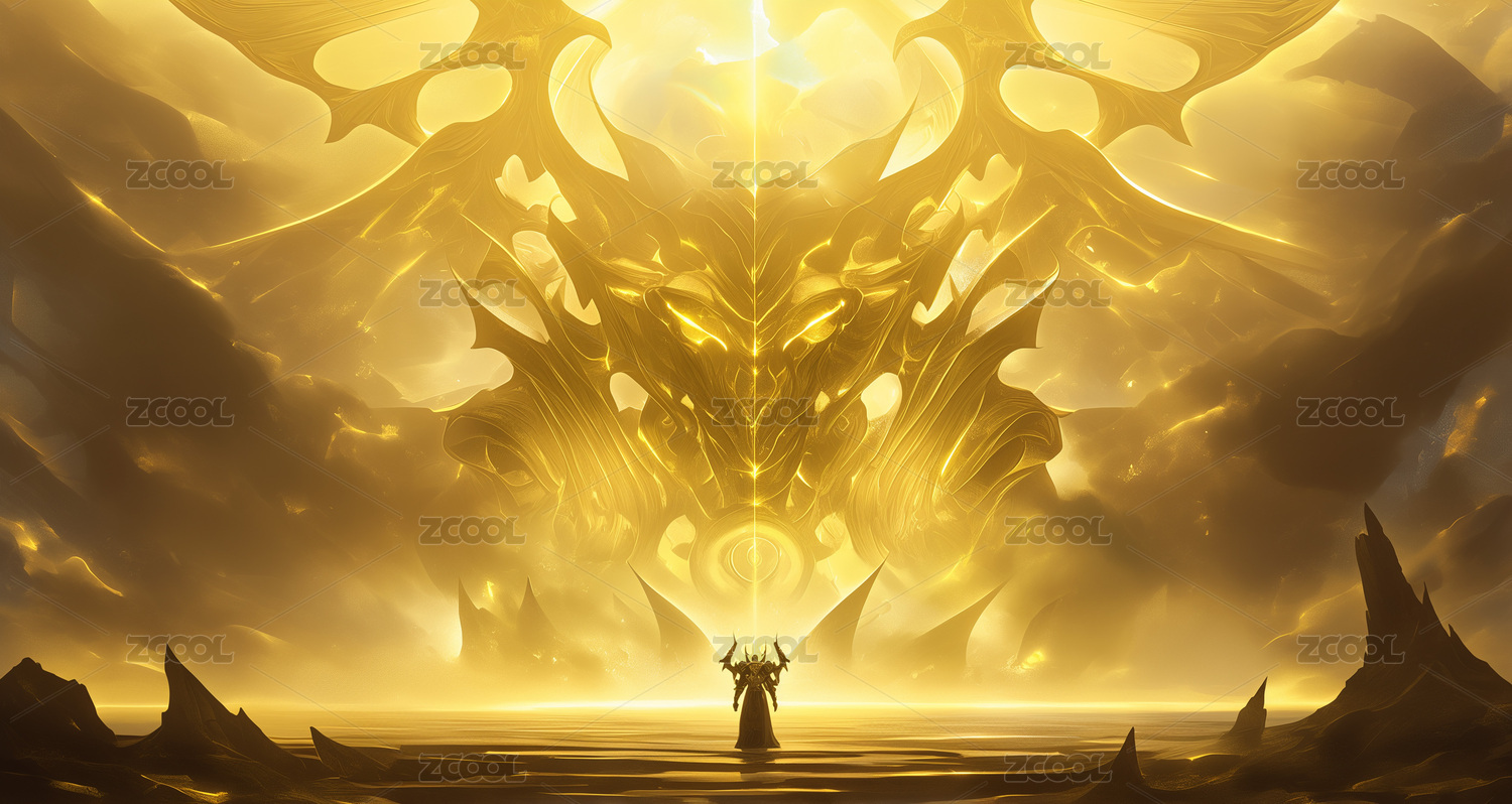 紫袍骷髅法师持魔法杖神秘光环庄严场景