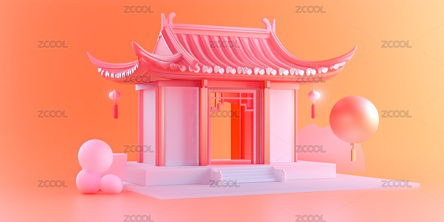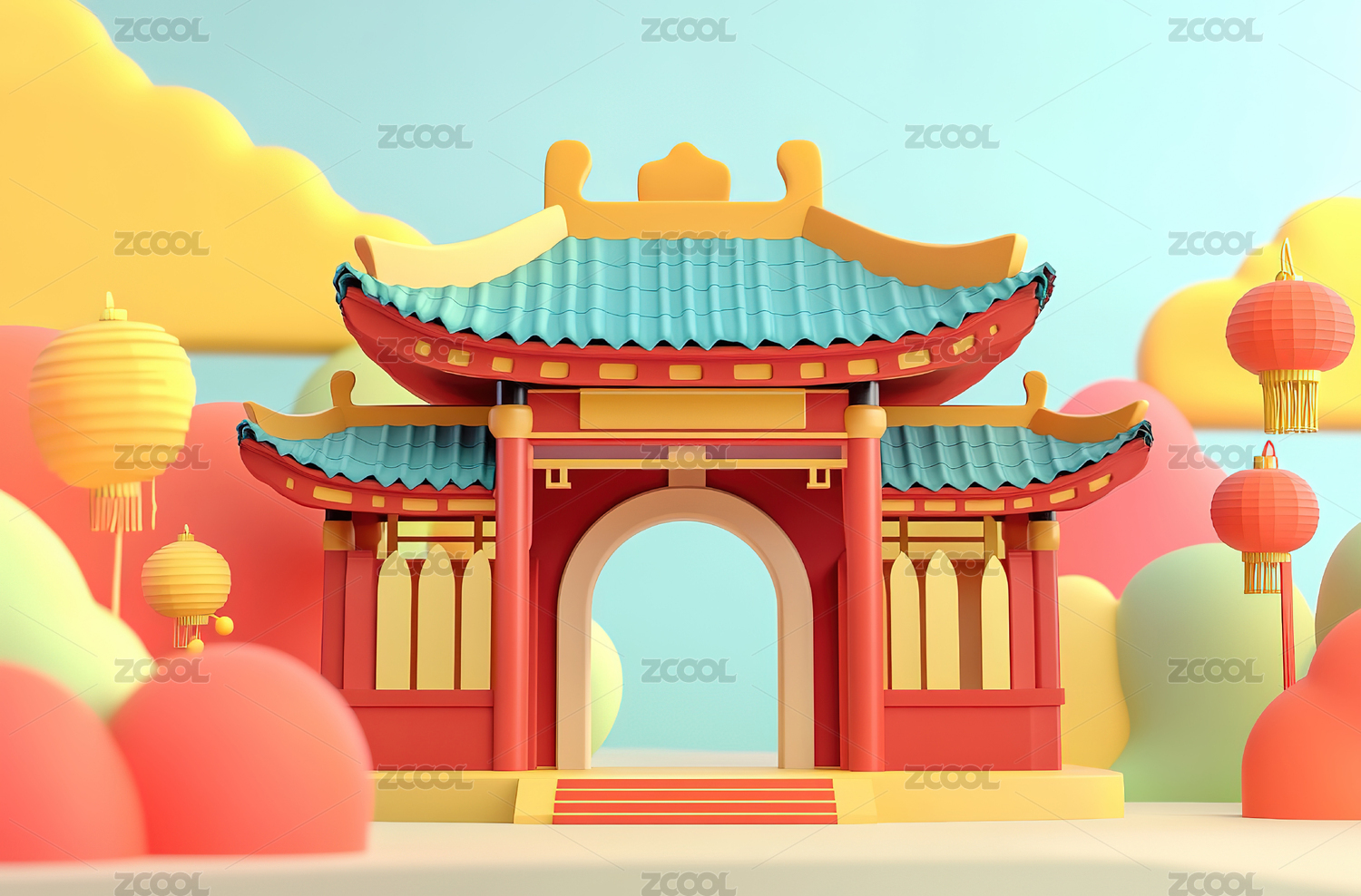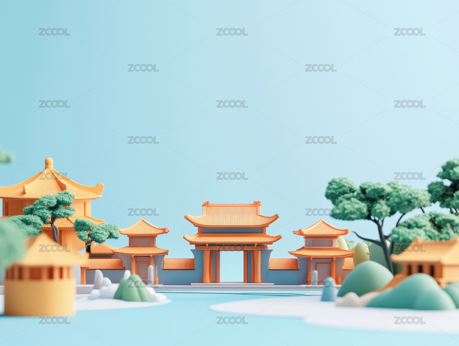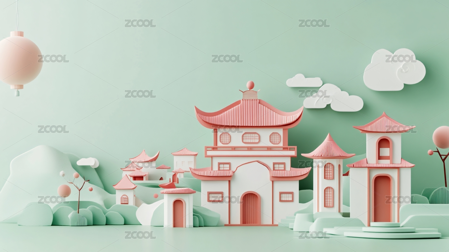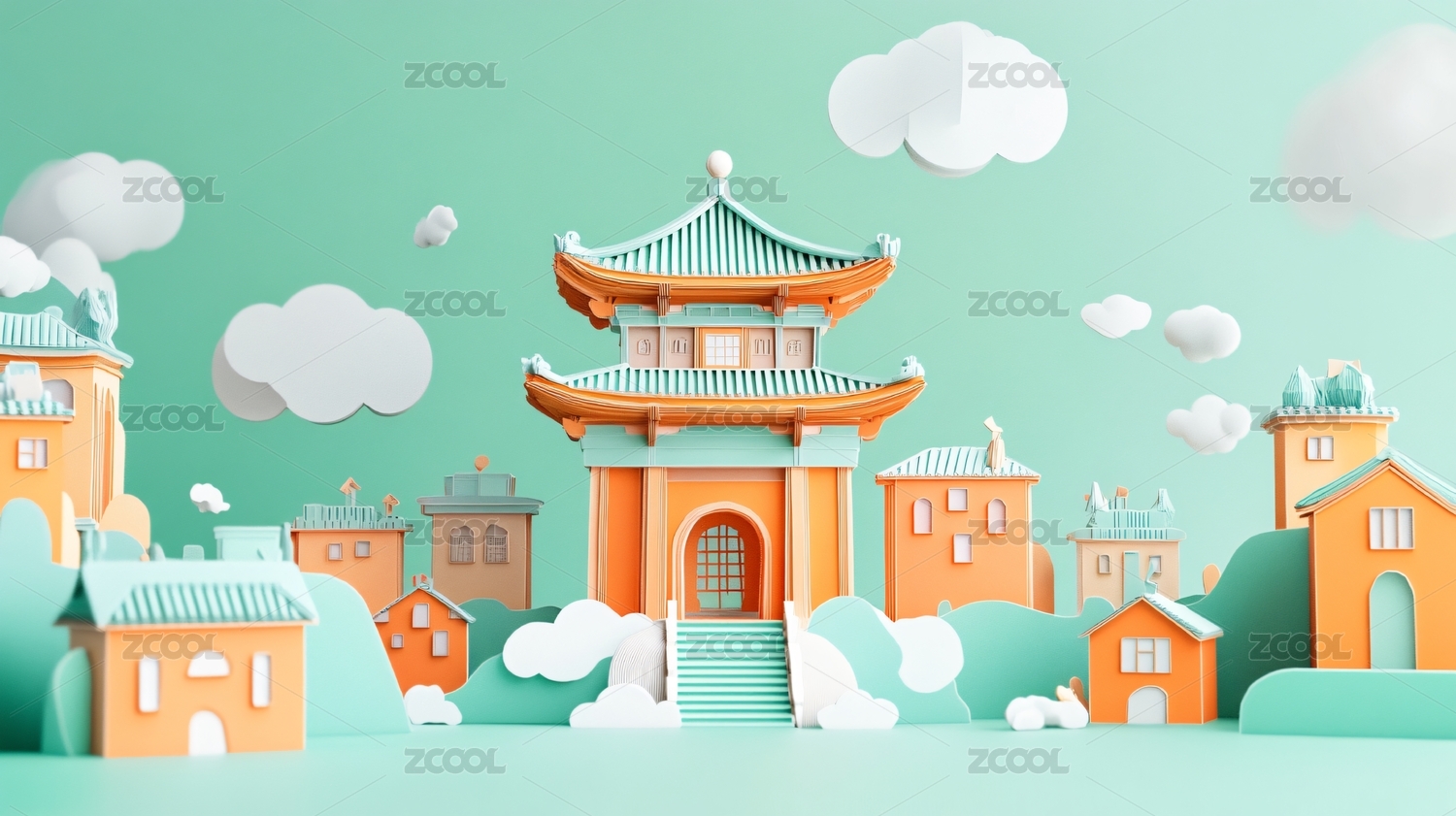 中国风古楼建筑传统国风古建筑国潮插画背景