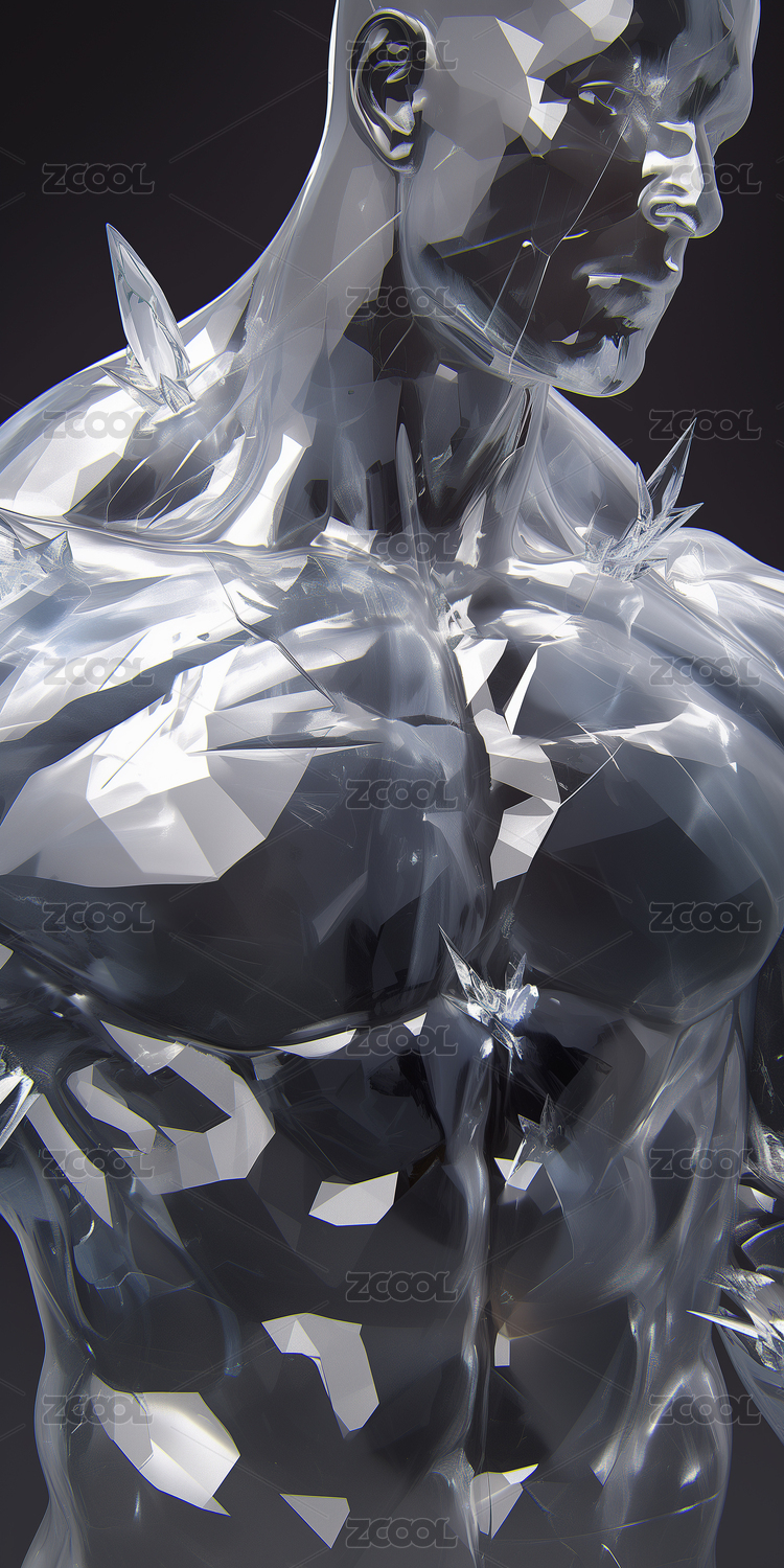 奇幻白色晶体冰雕肌肉男模特3D立体插画