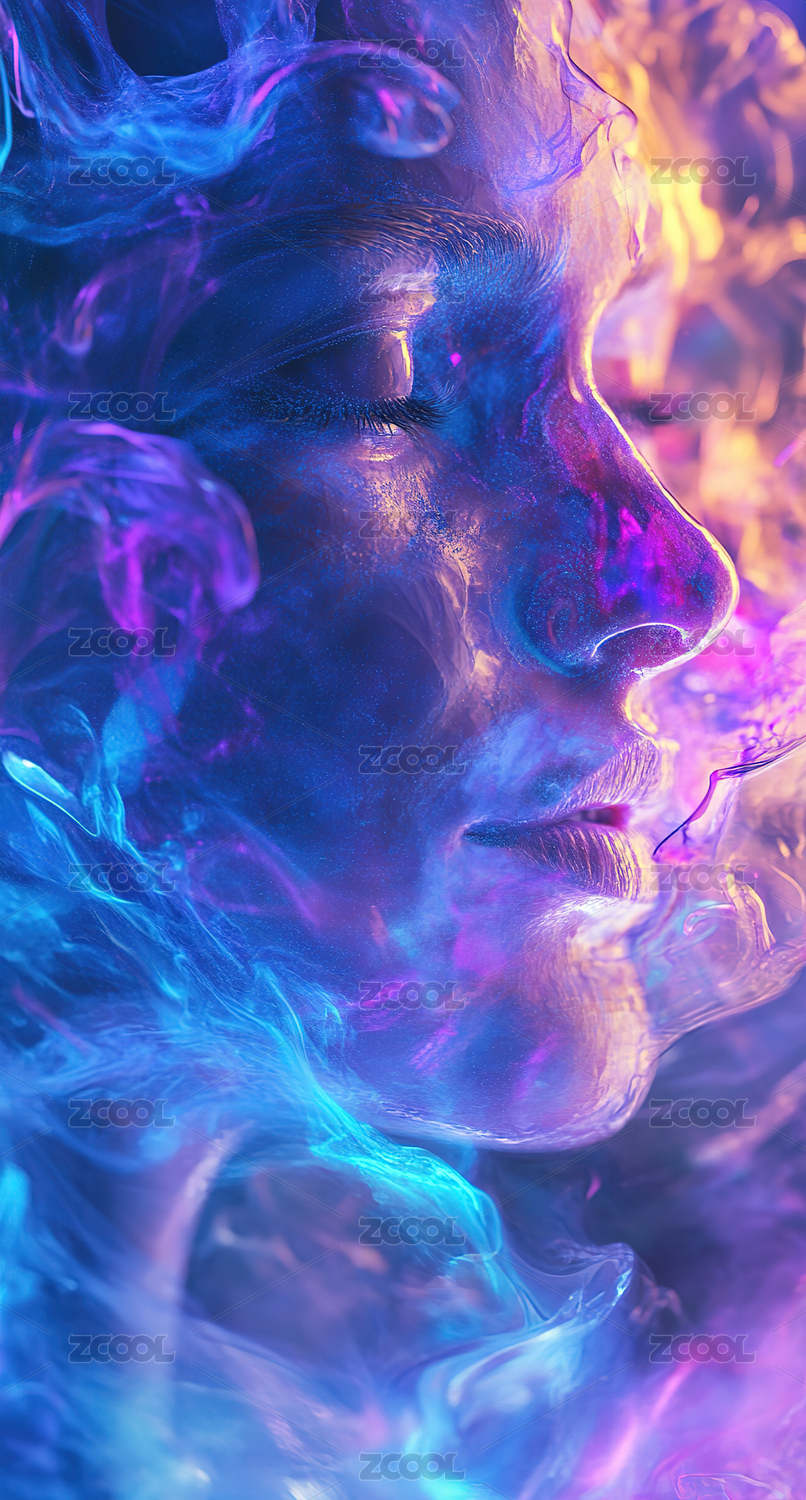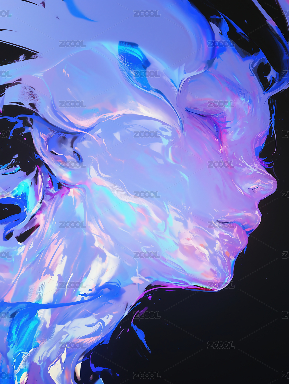 彩色浅浮雕牛奶液体颜料女性3D立体头像