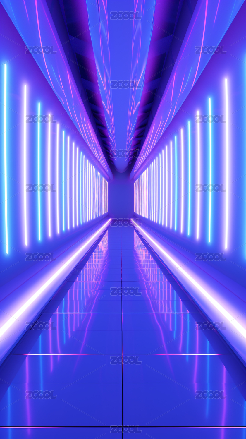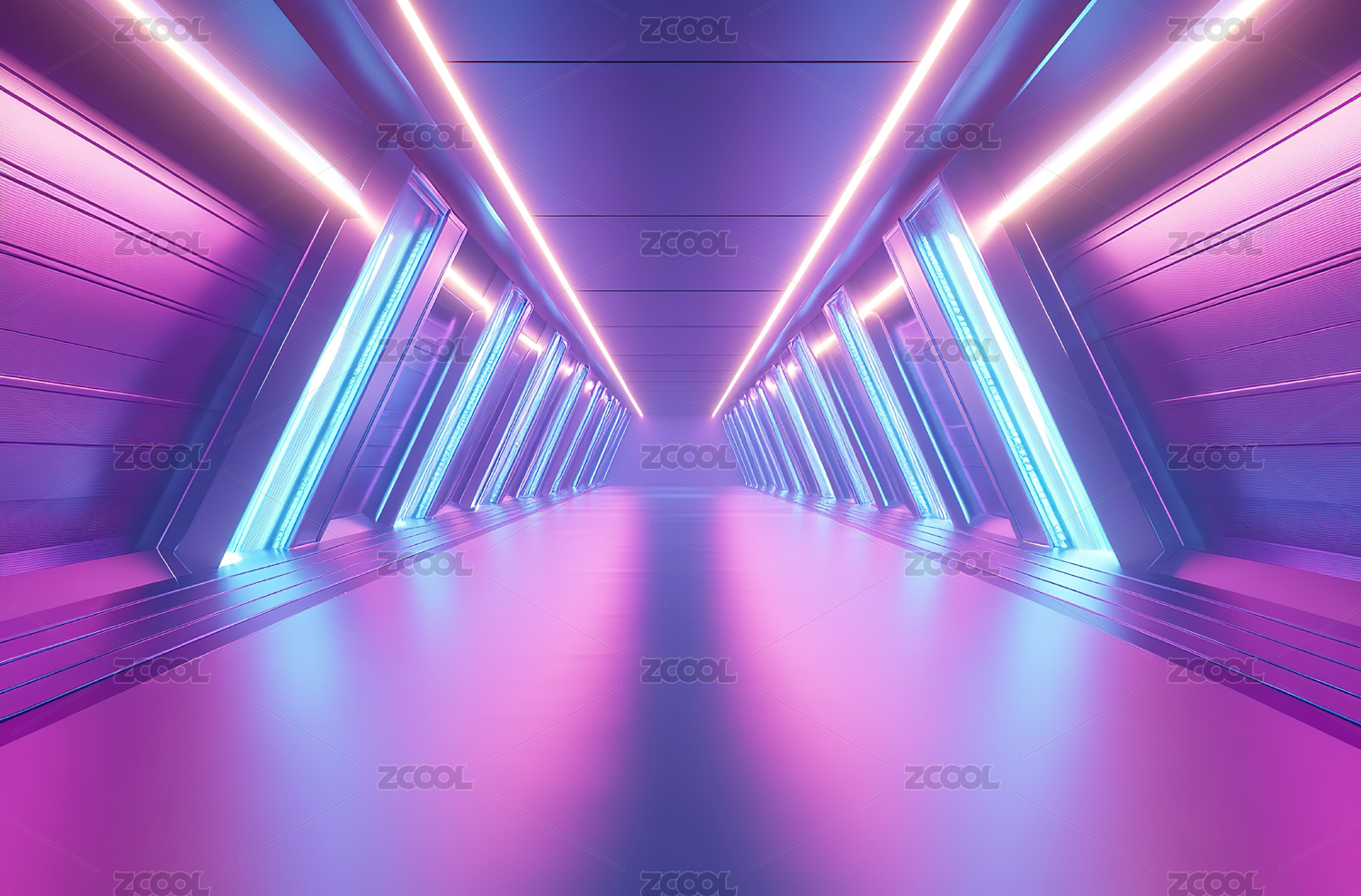 抽象科技感荧光色隧道走廊赛博朋克3D插画
