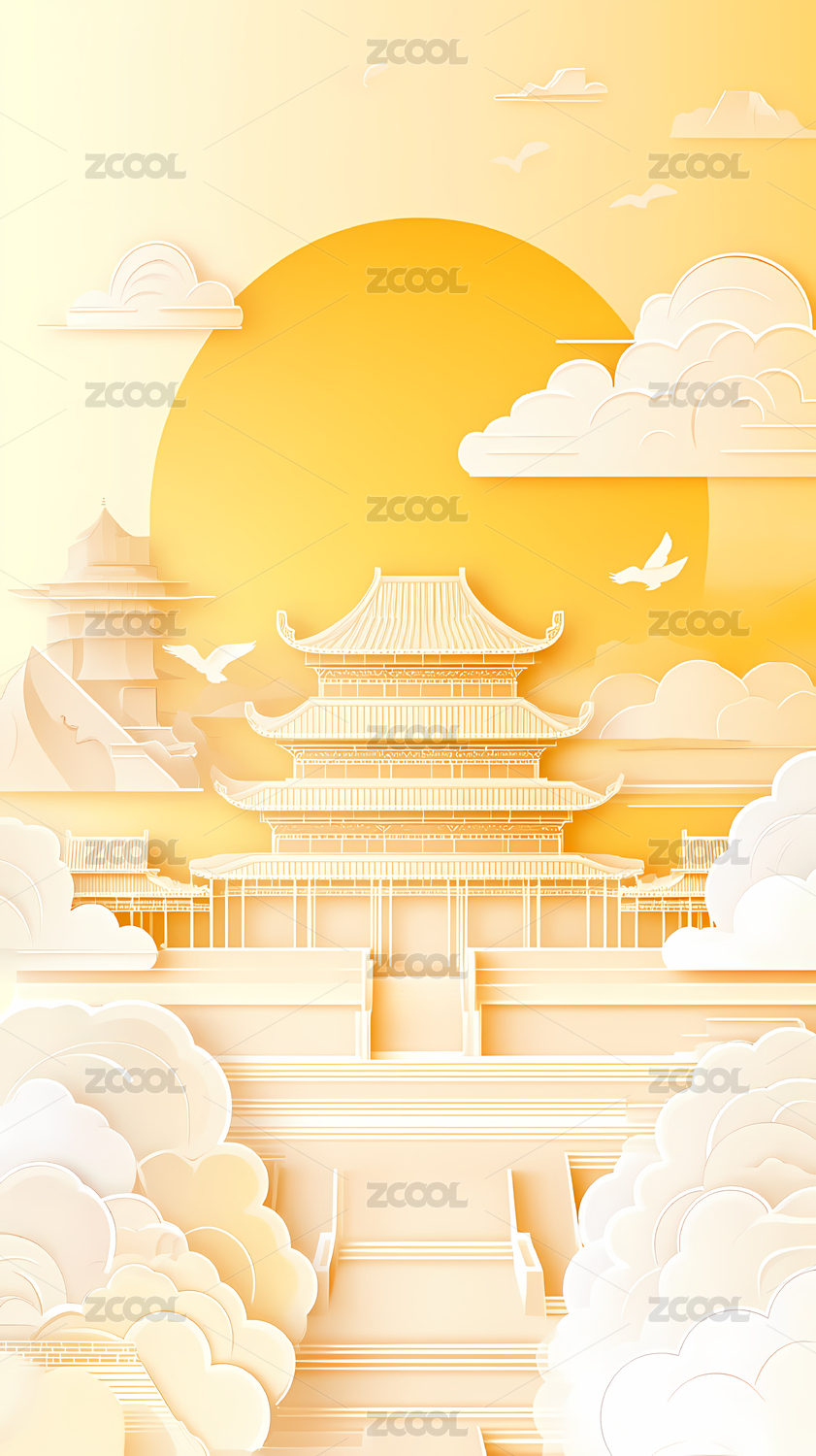 插画,国潮风,国风,背景,建筑,著名景点,城市,中国文化,旅行,人造空间