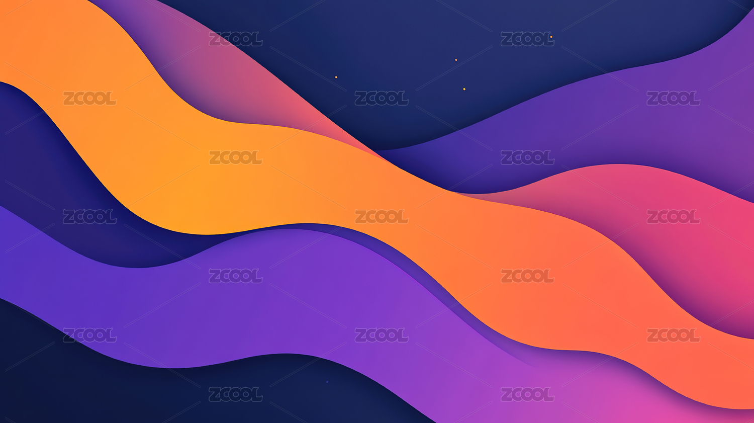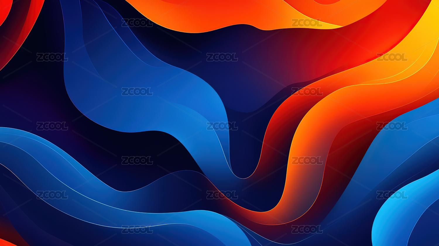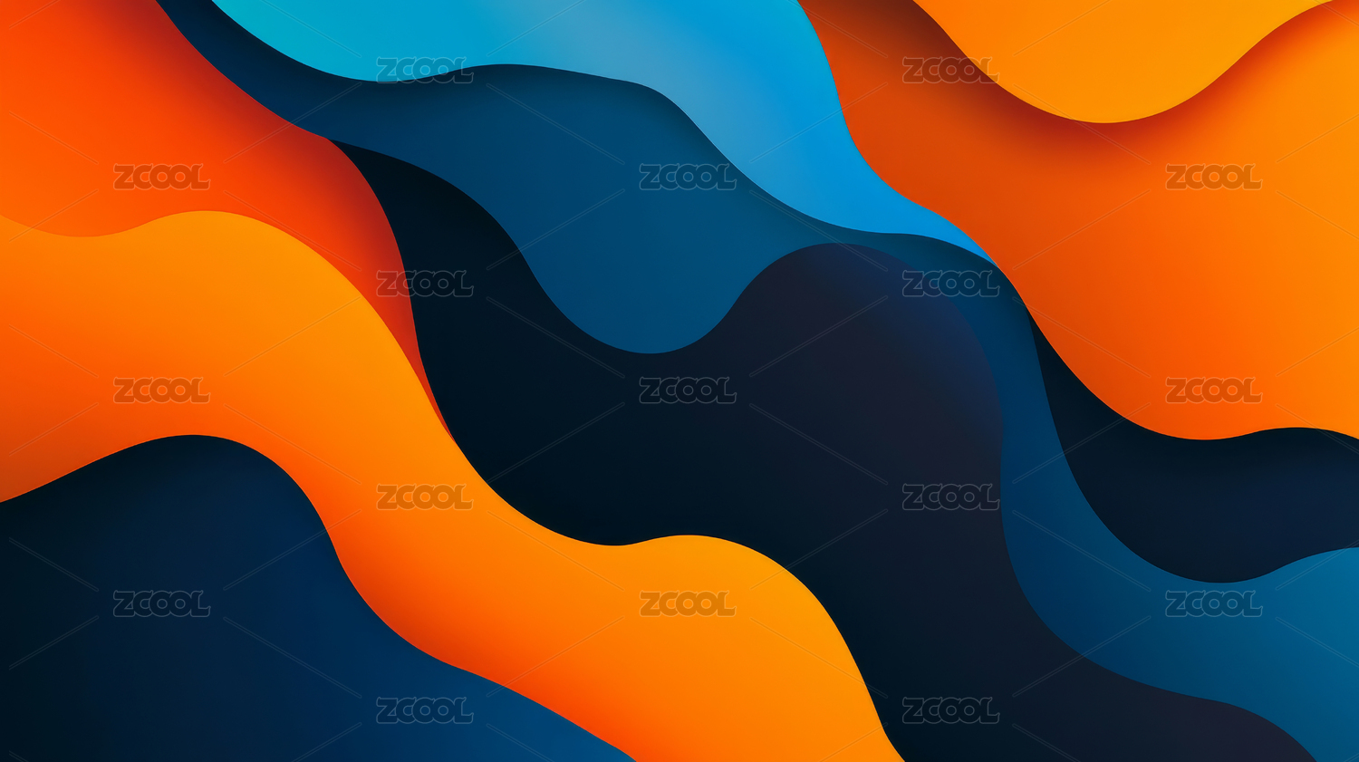 抽象渐变蓝色背景与橙色和蓝色波浪组成