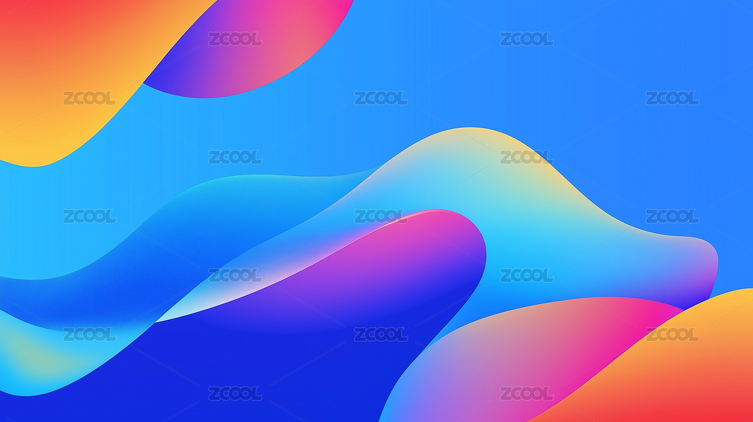 红色蓝色渐变波浪曲线明亮活力质感抽象背景
