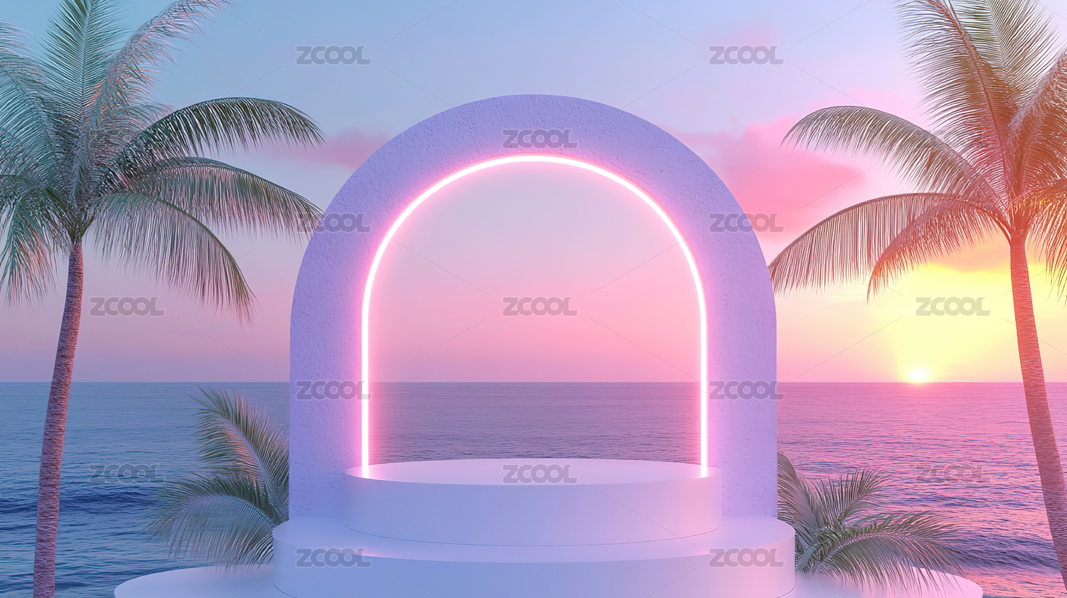 无人,背景,AI数字艺术,天空,棕榈树,展览,圆形,夏天,设计,自然