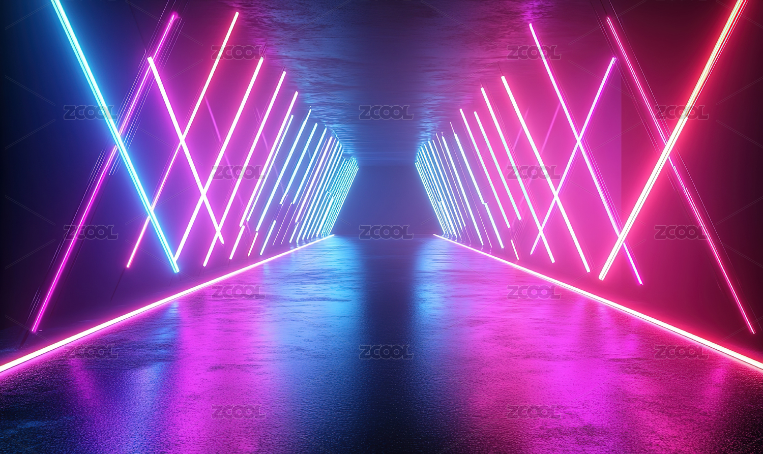 霓虹三角隧道的未来科技感空间