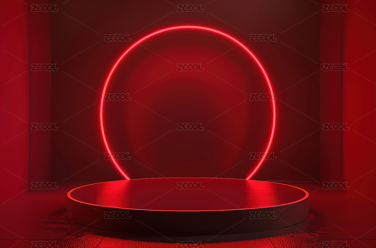 红色圆形舞台与光环的现代设计