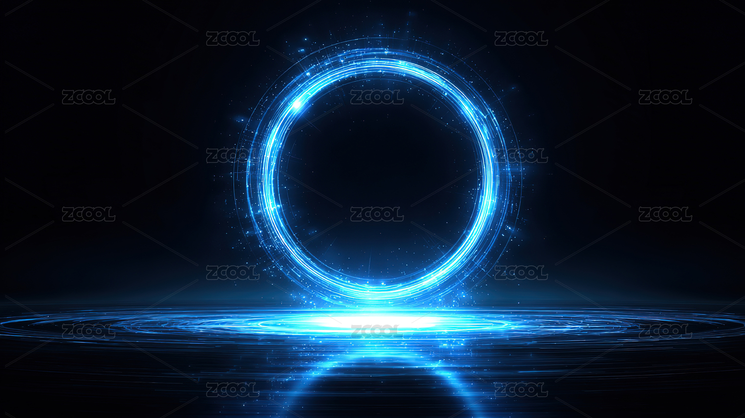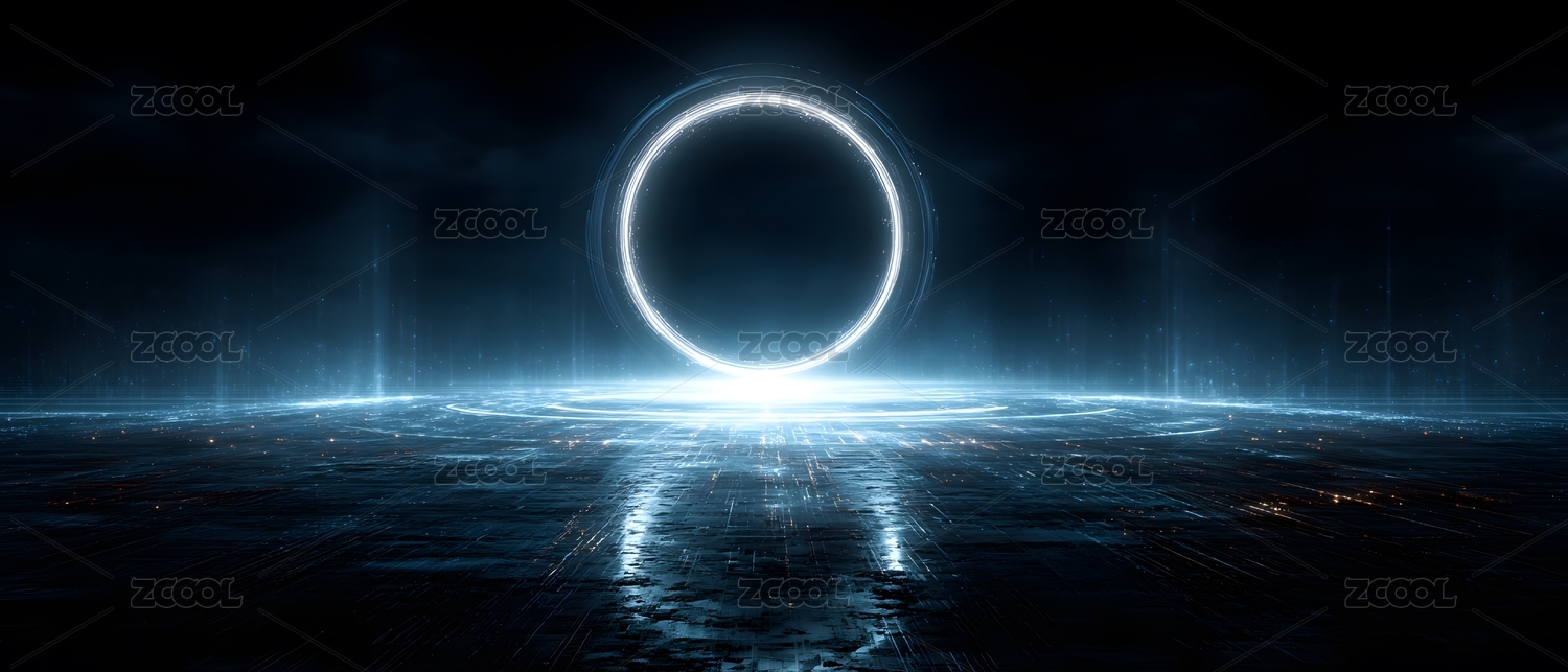 未来光环穿越科幻场景 黑暗蓝色未来主义