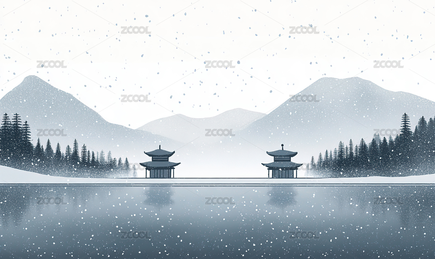 传统,二十四节气,节气,立冬,插画,海报,户外,湖边,自然,入冬