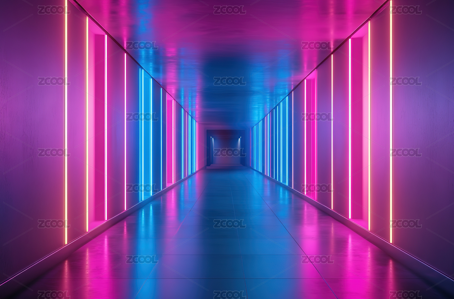 彩色灯光下的地下通道
