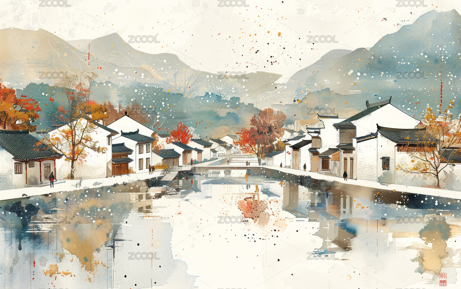 高山,天空,风景,户外,自然,建筑,宁静,AI数字艺术,建筑外部,树