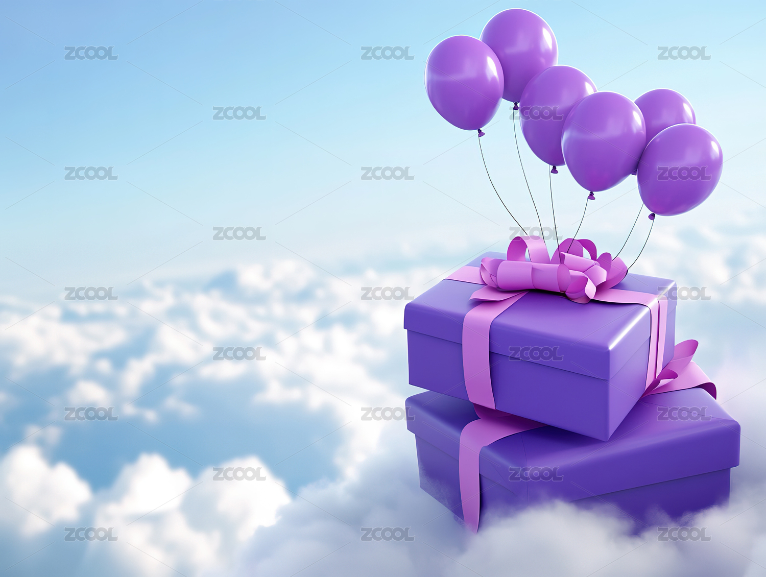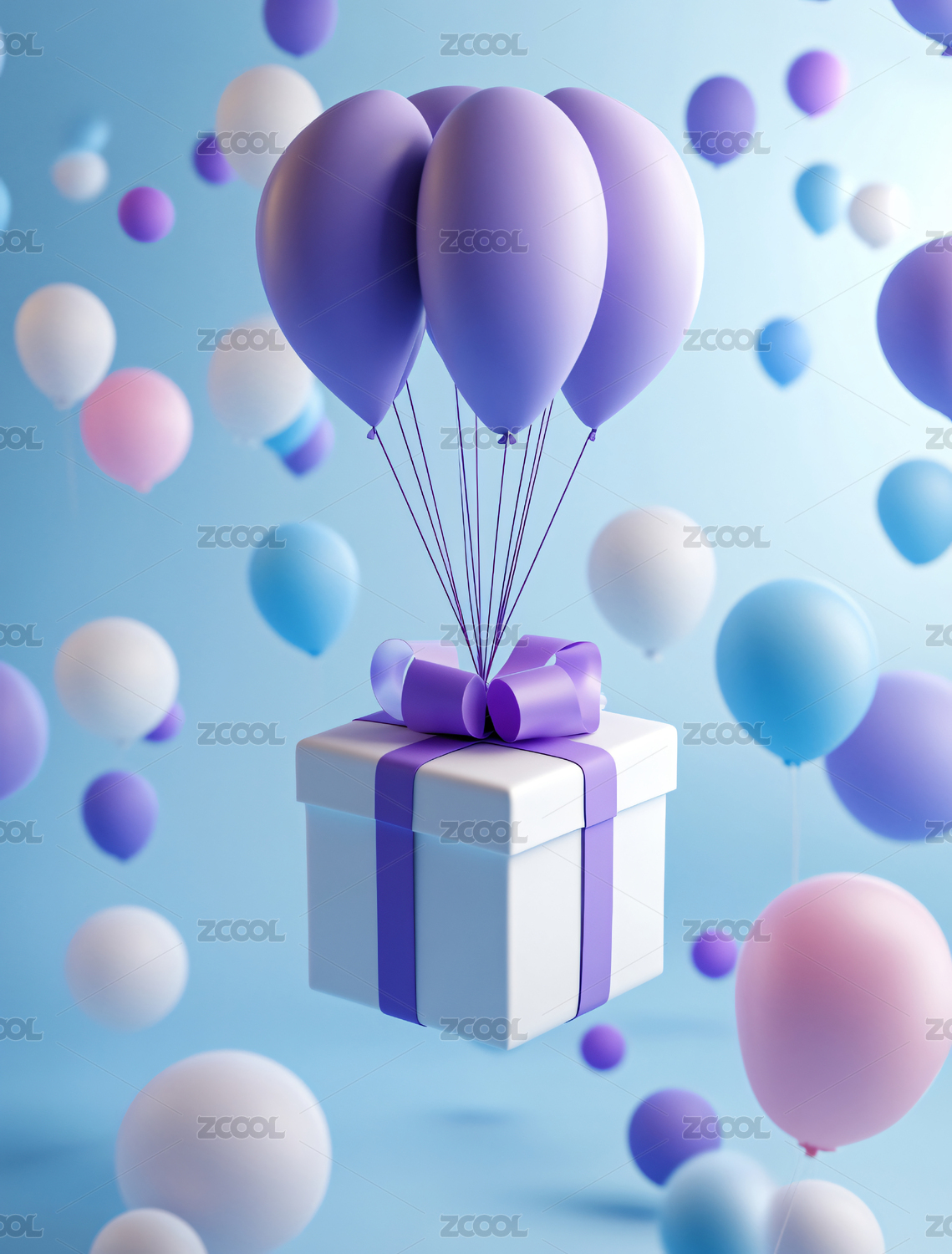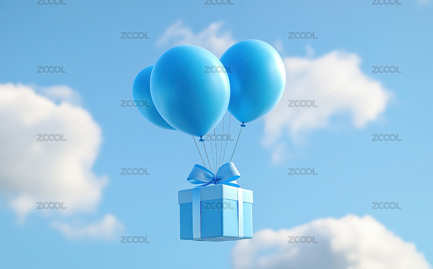 蓝色背景下的圣诞礼物和气球的特写镜头