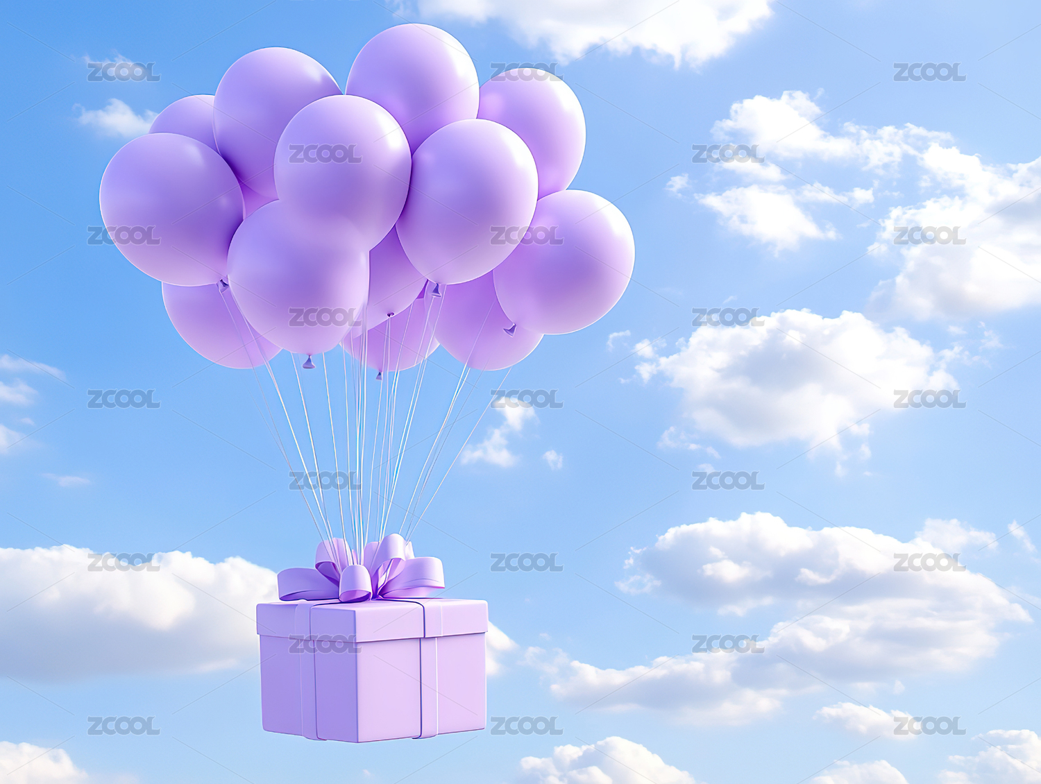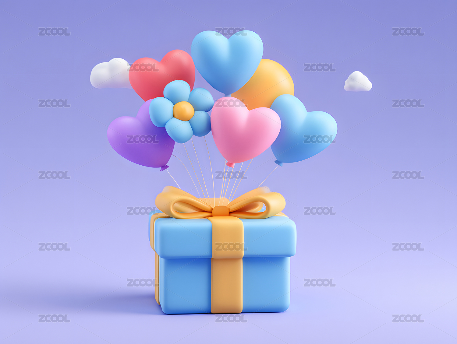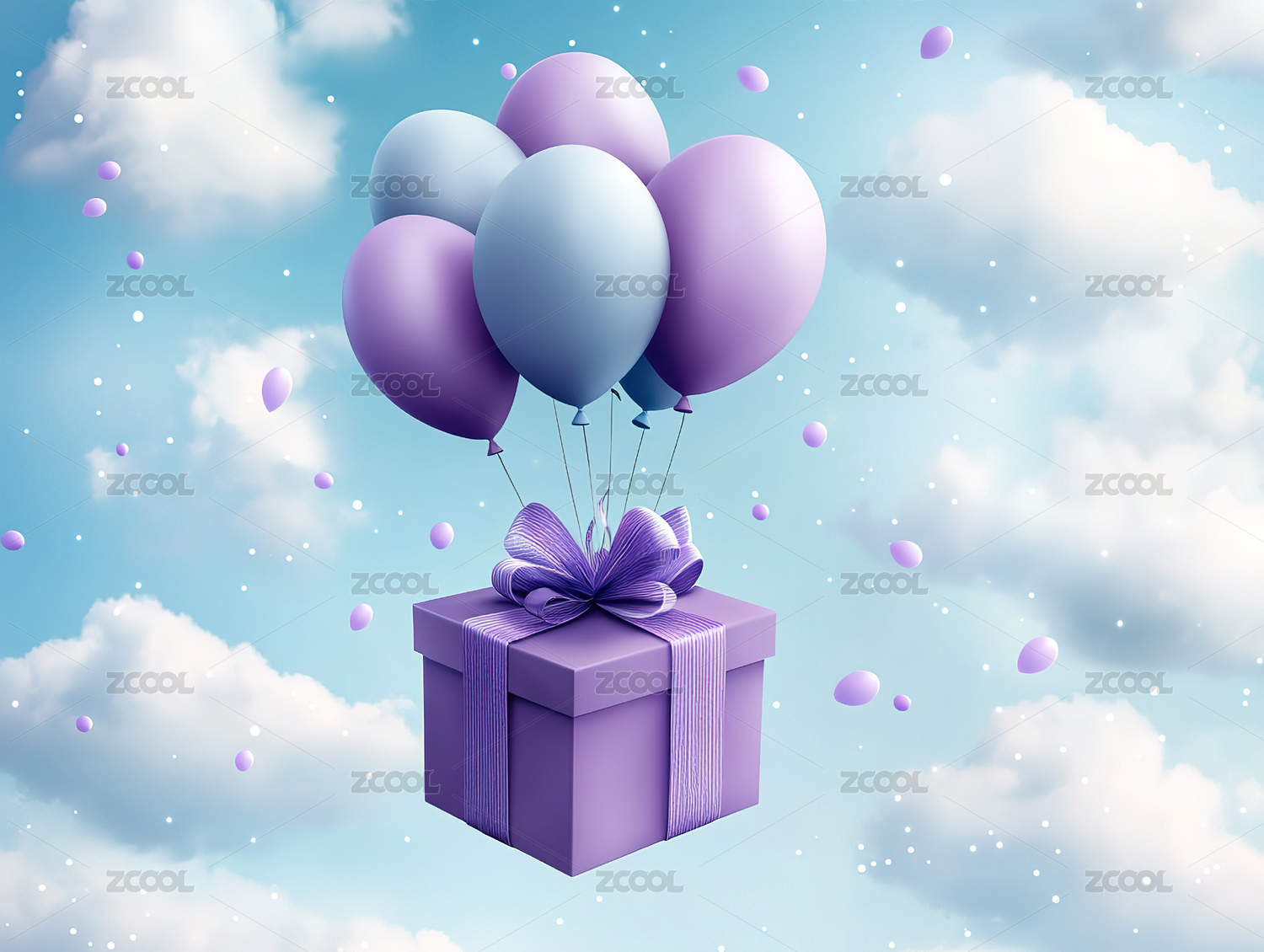 蓝色背景下的圣诞礼物和气球的特写镜头