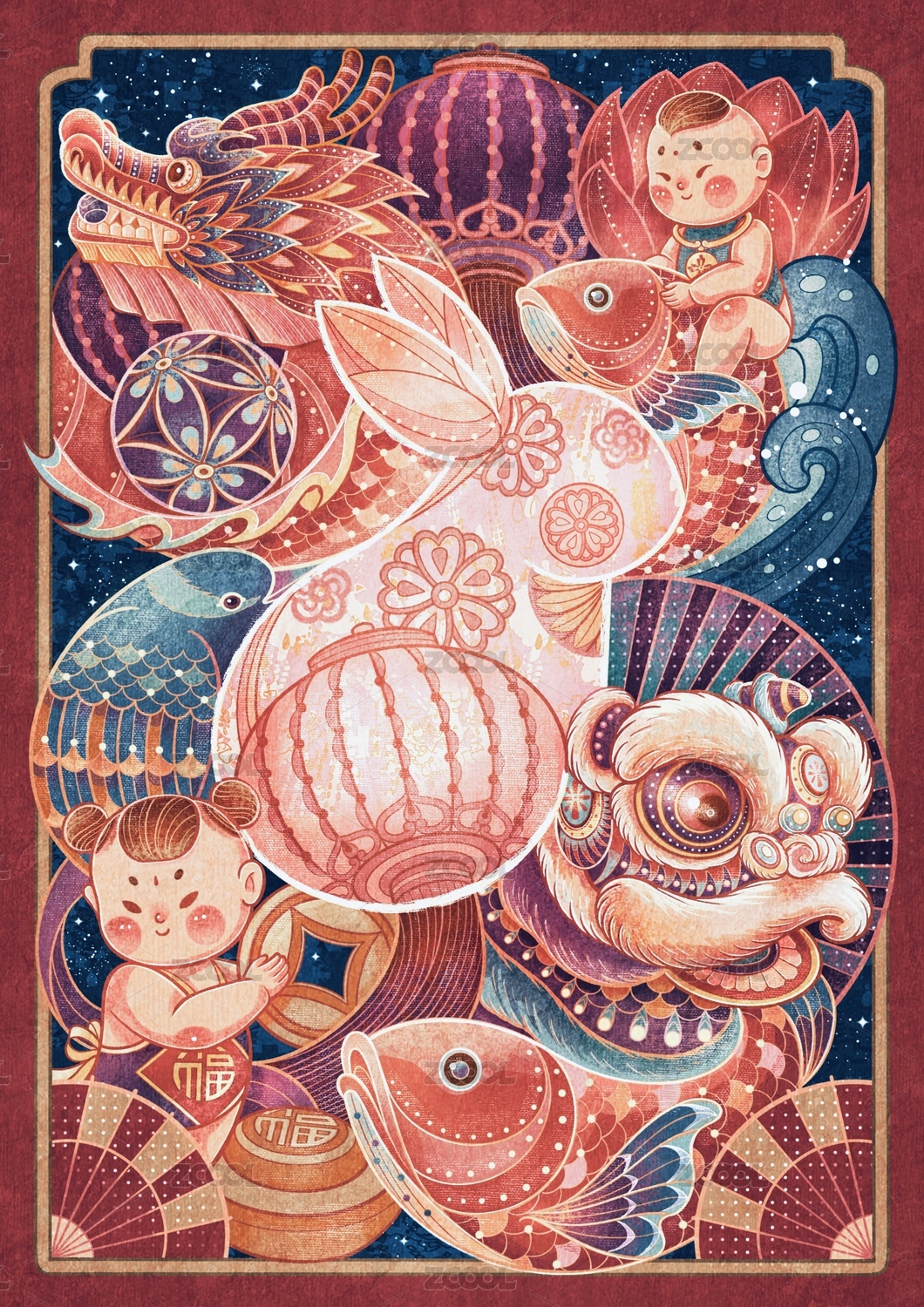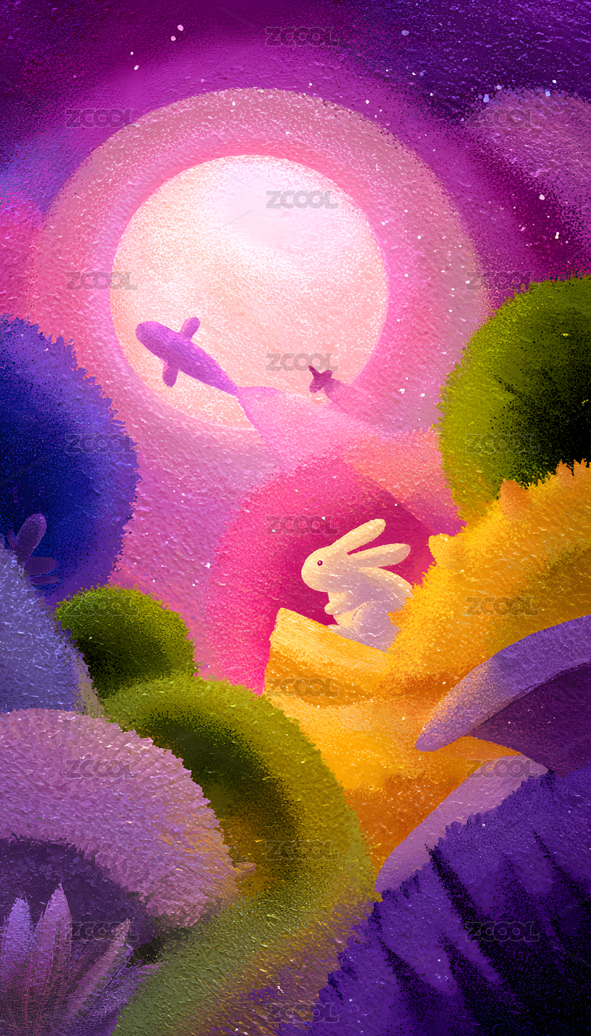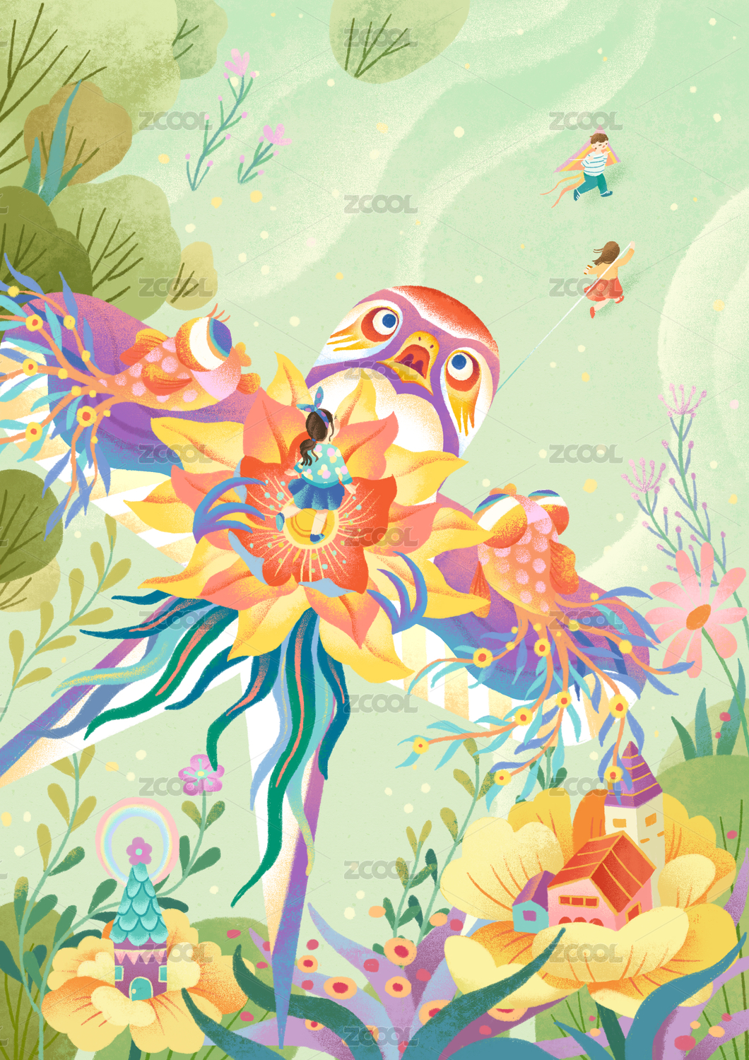 扁平可爱蝴蝶结兔子花卉肌理插画