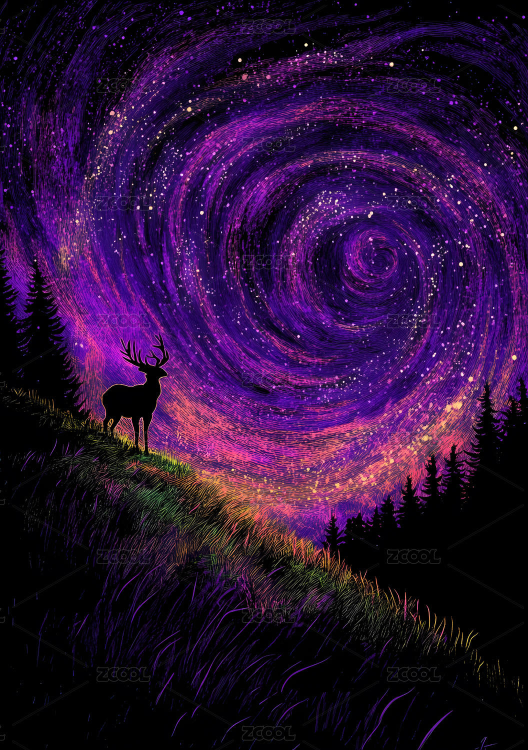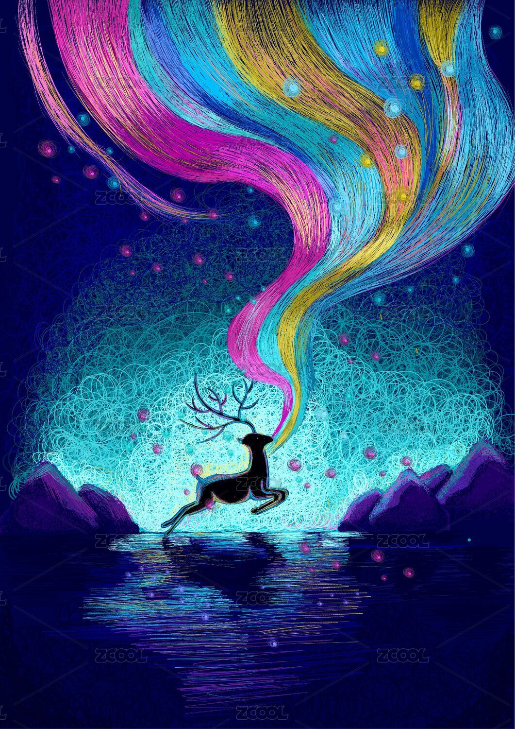 一个人拿着画笔站在梯子上绘画出炫丽的天空