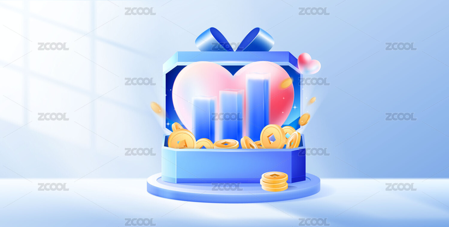 卡通礼盒促销抽奖互联网金融收益理财插画