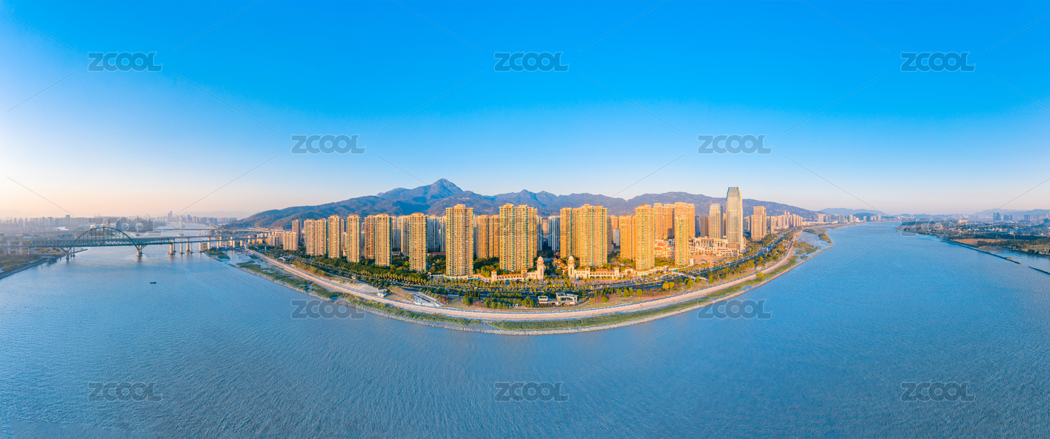 绍兴市上虞区曹娥江两岸城市风光航拍