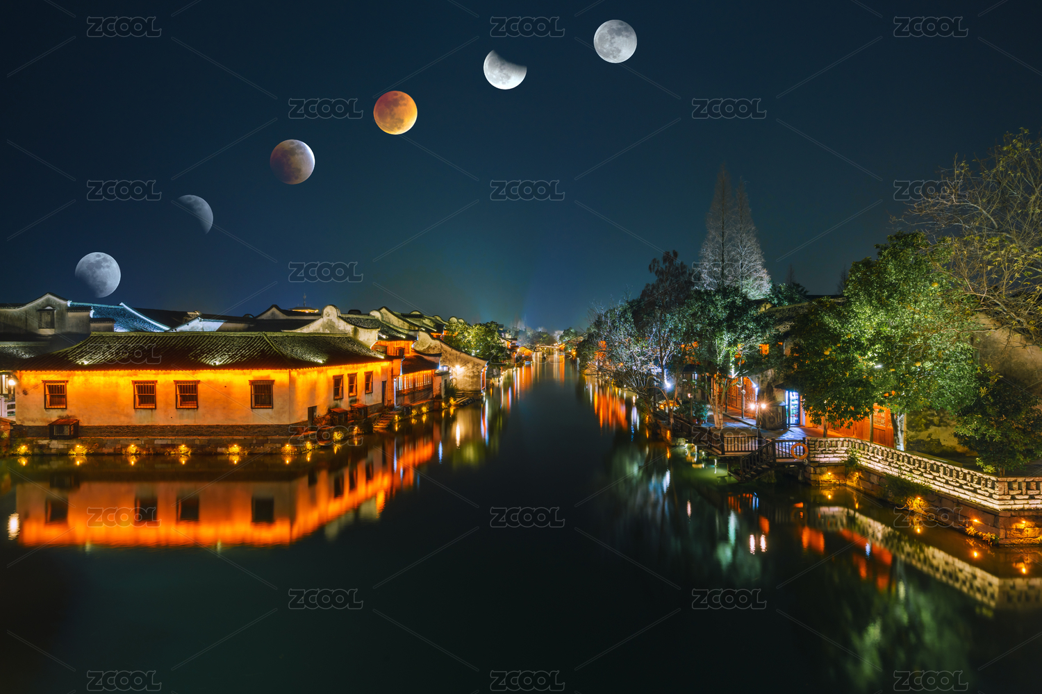 夜景,建筑物,河流,景点,上海,嘉定,州桥,旅游,灯光,植物