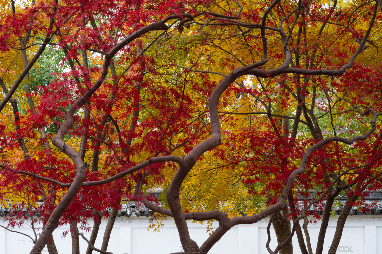 上海嘉定秋霞圃的黄色银杏和红色枫叶