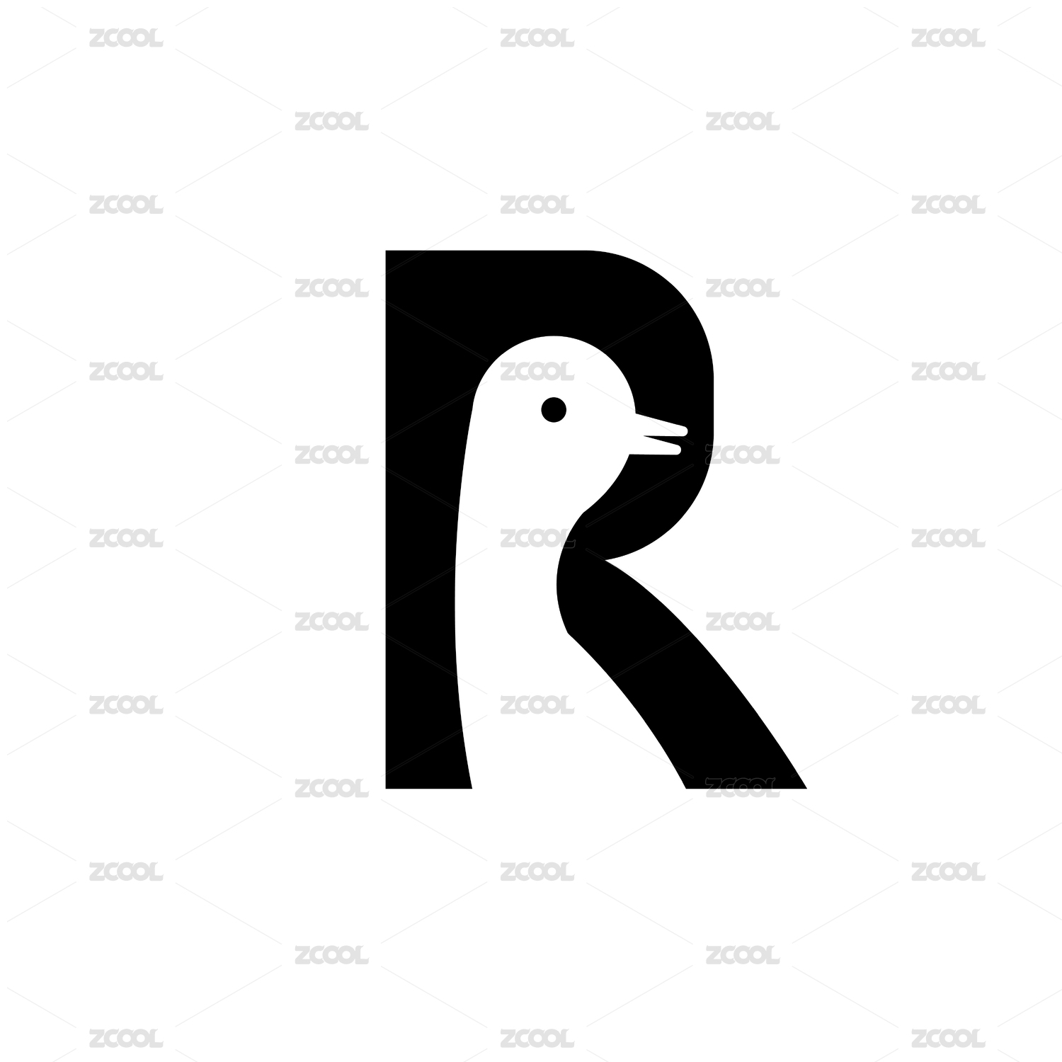 黑色图形字母创意组合R鸭